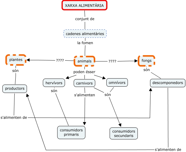 This Concept Map, created with IHMC CmapTools, has information related to: XarxaAlimentariaMireia, animals poden ésser omnívors, productors s'alimenten de descomponedors, animals poden ésser carnivors, plantes són productors, omnívors són consumidors secundaris, animals ???? plantes, carnivors són consumidors secundaris, XARXA ALIMENTÀRIA conjunt de cadenes alimentàries, descomponedors s'alimenten de productors, hervívors són consumidors primaris, carnivors s'alimenten consumidors primaris, animals poden ésser hervívors, fongs són descomponedors, animals ???? fongs, cadenes alimentàries la fomen animals
