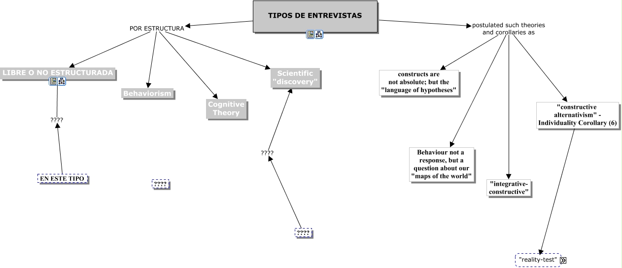 Este Cmap, tiene información relacionada con: Kelly2Hierarchy, EN ESTE TIPO ???? LIBRE O NO ESTRUCTURADA, TIPOS DE ENTREVISTAS POR ESTRUCTURA LIBRE O NO ESTRUCTURADA, TIPOS DE ENTREVISTAS postulated such theories and corollaries as constructs are not absolute; but the "language of hypotheses", TIPOS DE ENTREVISTAS postulated such theories and corollaries as Behaviour not a response, but a question about our "maps of the world", TIPOS DE ENTREVISTAS postulated such theories and corollaries as "constructive alternativism" - Individuality Corollary (6), TIPOS DE ENTREVISTAS POR ESTRUCTURA Scientific "discovery", "constructive alternativism" - Individuality Corollary (6) like scientists, we wish to predict and control the universe, TIPOS DE ENTREVISTAS POR ESTRUCTURA Behaviorism, "constructive alternativism" - Individuality Corollary (6) like scientists, we vs failed hypothesis testing, ???? ???? Scientific "discovery", TIPOS DE ENTREVISTAS postulated such theories and corollaries as "integrative- constructive", TIPOS DE ENTREVISTAS POR ESTRUCTURA Cognitive Theory