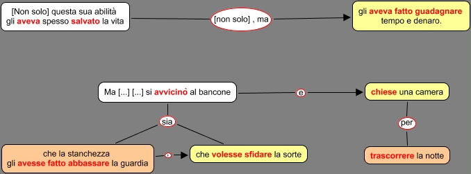 Questa Cmap, creata con IHMC CmapTools, contiene informazioni relative a: John 07, Ma [...] [...] si avvicinò al bancone sia che volesse sfidare la sorte, Ma [...] [...] si avvicinò al bancone sia che la stanchezza gli avesse fatto abbassare la guardia, chiese una camera per trascorrere la notte, [Non solo] questa sua abilità gli aveva spesso salvato la vita [non solo] , ma gli aveva fatto guadagnare tempo e denaro., Ma [...] [...] si avvicinò al bancone e chiese una camera, che la stanchezza gli avesse fatto abbassare la guardia , che volesse sfidare la sorte