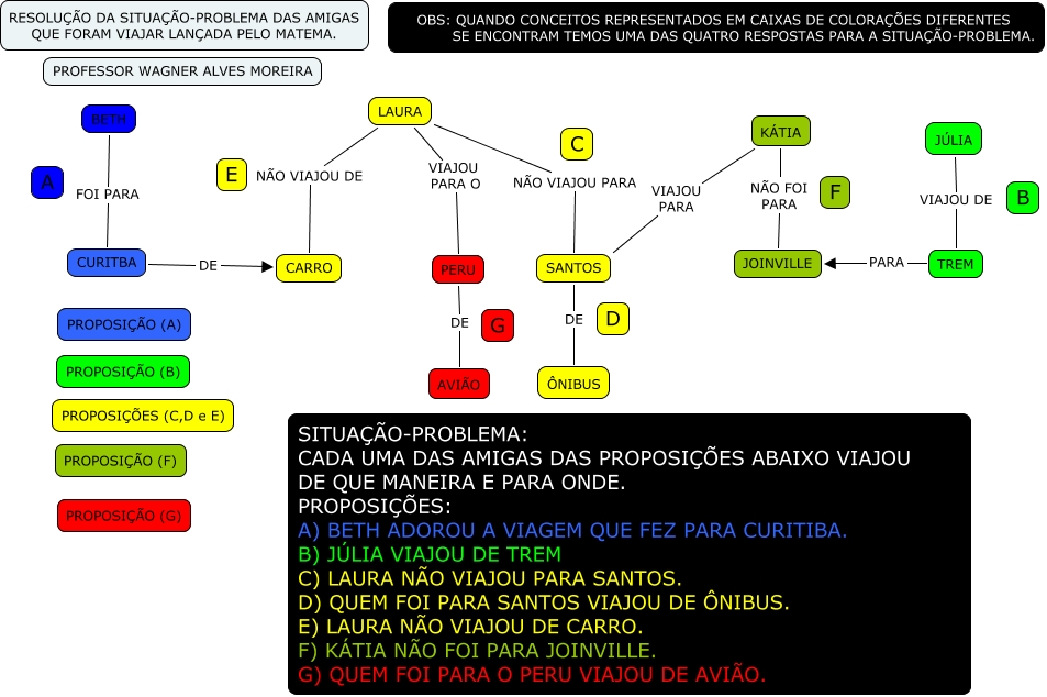 Esse mapa conceitual, produzido no IHMC CmapTools, tem a informação relacionada a: SITUAÇÃO-PROBLEMA MATEMA, SANTOS DE ÔNIBUS, CURITBA DE CARRO, JÚLIA VIAJOU DE TREM, KÁTIA NÃO FOI PARA JOINVILLE, BETH FOI PARA CURITBA, LAURA VIAJOU PARA O PERU, LAURA NÃO VIAJOU PARA SANTOS, KÁTIA VIAJOU PARA SANTOS, TREM PARA JOINVILLE, LAURA NÃO VIAJOU DE CARRO, PERU DE AVIÃO