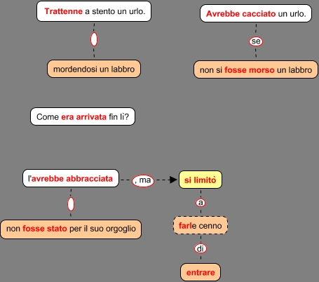 Questa Cmap, creata con IHMC CmapTools, contiene informazioni relative a: John 22, l'avrebbe abbracciata , ma si limitò, si limitò a farle cenno, farle cenno di entrare, l'avrebbe abbracciata non fosse stato per il suo orgoglio, Avrebbe cacciato un urlo. se non si fosse morso un labbro, Trattenne a stento un urlo. mordendosi un labbro