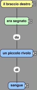 Questa Cmap, creata con IHMC CmapTools, contiene informazioni relative a: Sintagmi 001, era segnato da un piccolo rivolo, il braccio destro era segnato, un piccolo rivolo di sangue