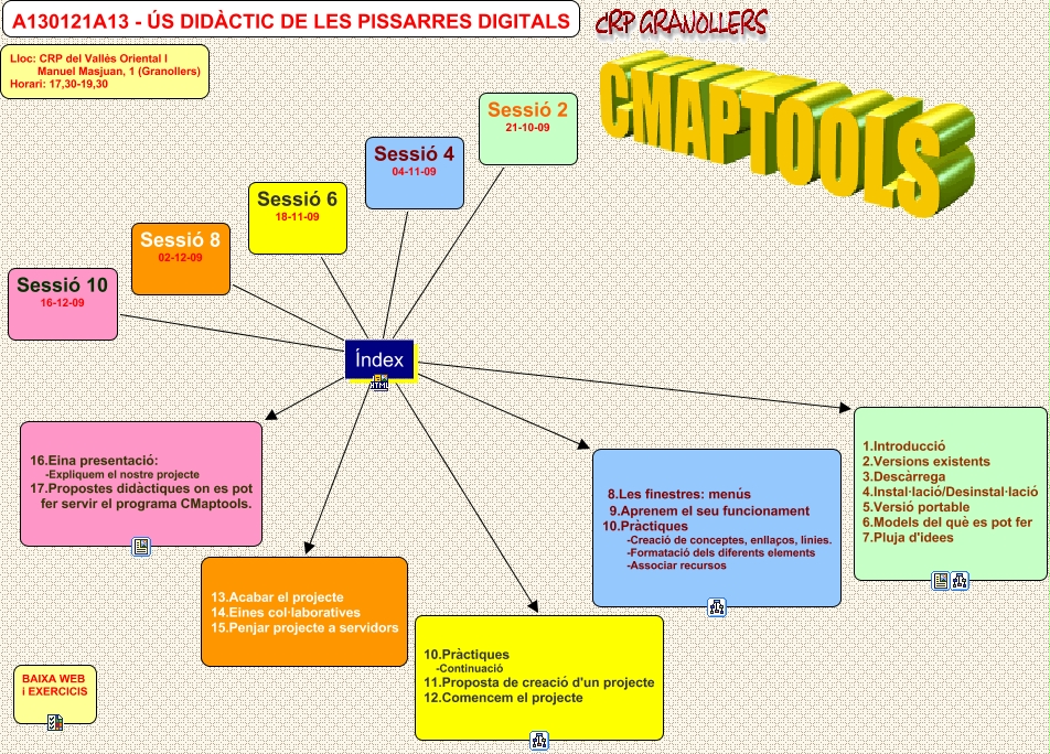 Aquest mapa conceptual conté informació relacionada amb: inici, Sessió 2 21-10-09 Índex 8.Les finestres: menús 9.Aprenem el seu funcionament 10.Pràctiques -Creació de conceptes, enllaços, línies. -Formatació dels diferents elements -Associar recursos, Sessió 6 18-11-09 Índex 10.Pràctiques -Continuació 11.Proposta de creació d'un projecte 12.Comencem el projecte, Sessió 6 18-11-09 Índex 1.Introducció 2.Versions existents 3.Descàrrega 4.Instal·lació/Desinstal·lació 5.Versió portable 6.Models del què es pot fer 7.Pluja d'idees, Sessió 10 16-12-09 Índex 13.Acabar el projecte 14.Eines col·laboratives 15.Penjar projecte a servidors, Sessió 2 21-10-09 Índex 16.Eina presentació: -Expliquem el nostre projecte 17.Propostes didàctiques on es pot fer servir el programa CMaptools., Sessió 4 04-11-09 Índex 16.Eina presentació: -Expliquem el nostre projecte 17.Propostes didàctiques on es pot fer servir el programa CMaptools., Sessió 2 21-10-09 Índex 13.Acabar el projecte 14.Eines col·laboratives 15.Penjar projecte a servidors, Sessió 2 21-10-09 Índex 1.Introducció 2.Versions existents 3.Descàrrega 4.Instal·lació/Desinstal·lació 5.Versió portable 6.Models del què es pot fer 7.Pluja d'idees, Sessió 6 18-11-09 Índex 8.Les finestres: menús 9.Aprenem el seu funcionament 10.Pràctiques -Creació de conceptes, enllaços, línies. -Formatació dels diferents elements -Associar recursos, Sessió 4 04-11-09 Índex 10.Pràctiques -Continuació 11.Proposta de creació d'un projecte 12.Comencem el projecte, Sessió 4 04-11-09 Índex 13.Acabar el projecte 14.Eines col·laboratives 15.Penjar projecte a servidors, Sessió 10 16-12-09 Índex 10.Pràctiques -Continuació 11.Proposta de creació d'un projecte 12.Comencem el projecte, Sessió 8 02-12-09 Índex 8.Les finestres: menús 9.Aprenem el seu funcionament 10.Pràctiques -Creació de conceptes, enllaços, línies. -Formatació dels diferents elements -Associar recursos, Sessió 8 02-12-09 Índex 16.Eina presentació: -Expliquem el nostre projecte 17.Propostes didàctiques on es pot fer servir el programa CMaptools., Sessió 2 21-10-09 Índex 10.Pràctiques -Continuació 11.Proposta de creació d'un projecte 12.Comencem el projecte, Sessió 10 16-12-09 Índex 1.Introducció 2.Versions existents 3.Descàrrega 4.Instal·lació/Desinstal·lació 5.Versió portable 6.Models del què es pot fer 7.Pluja d'idees, Sessió 6 18-11-09 Índex 16.Eina presentació: -Expliquem el nostre projecte 17.Propostes didàctiques on es pot fer servir el programa CMaptools., Sessió 4 04-11-09 Índex 8.Les finestres: menús 9.Aprenem el seu funcionament 10.Pràctiques -Creació de conceptes, enllaços, línies. -Formatació dels diferents elements -Associar recursos, Sessió 8 02-12-09 Índex 1.Introducció 2.Versions existents 3.Descàrrega 4.Instal·lació/Desinstal·lació 5.Versió portable 6.Models del què es pot fer 7.Pluja d'idees, Sessió 10 16-12-09 Índex 8.Les finestres: menús 9.Aprenem el seu funcionament 10.Pràctiques -Creació de conceptes, enllaços, línies. -Formatació dels diferents elements -Associar recursos