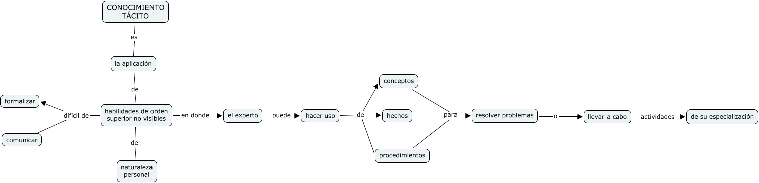 conocimiento_tacito, hacer uso de procedimientos, resolver problemas o llevar a cabo, habilidades de orden superior no visibles difícil de formalizar, hacer uso de conceptos, habilidades de orden superior no visibles en donde el experto, procedimientos para resolver problemas, el experto puede hacer uso, la aplicación de habilidades de orden superior no visibles, habilidades de orden superior no visibles difícil de comunicar, conceptos para resolver problemas