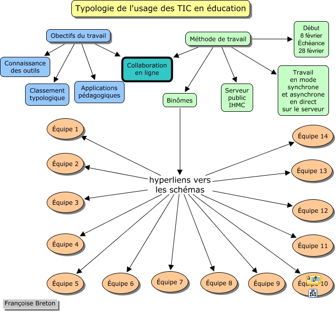 This Concept Map, created with IHMC CmapTools, has information related to: PED879_binomes, Obectifs du travail Classement typologique, Binômes hyperliens vers les schémas Équipe 9, Binômes hyperliens vers les schémas Équipe 8, Binômes hyperliens vers les schémas Équipe 10, Binômes hyperliens vers les schémas Équipe 13, Binômes hyperliens vers les schémas Équipe 11, Binômes hyperliens vers les schémas Équipe 6, Obectifs du travail Applications pédagogiques, Binômes hyperliens vers les schémas Équipe 14, Binômes hyperliens vers les schémas Équipe 7, Méthode de travail Serveur public IHMC, Binômes hyperliens vers les schémas Équipe 1, Binômes hyperliens vers les schémas Équipe 2, Obectifs du travail Collaboration en ligne, Binômes hyperliens vers les schémas Équipe 5, Méthode de travail Collaboration en ligne, Obectifs du travail Connaissance des outils, Binômes hyperliens vers les schémas Équipe 4, Méthode de travail Binômes, Binômes hyperliens vers les schémas Équipe 3