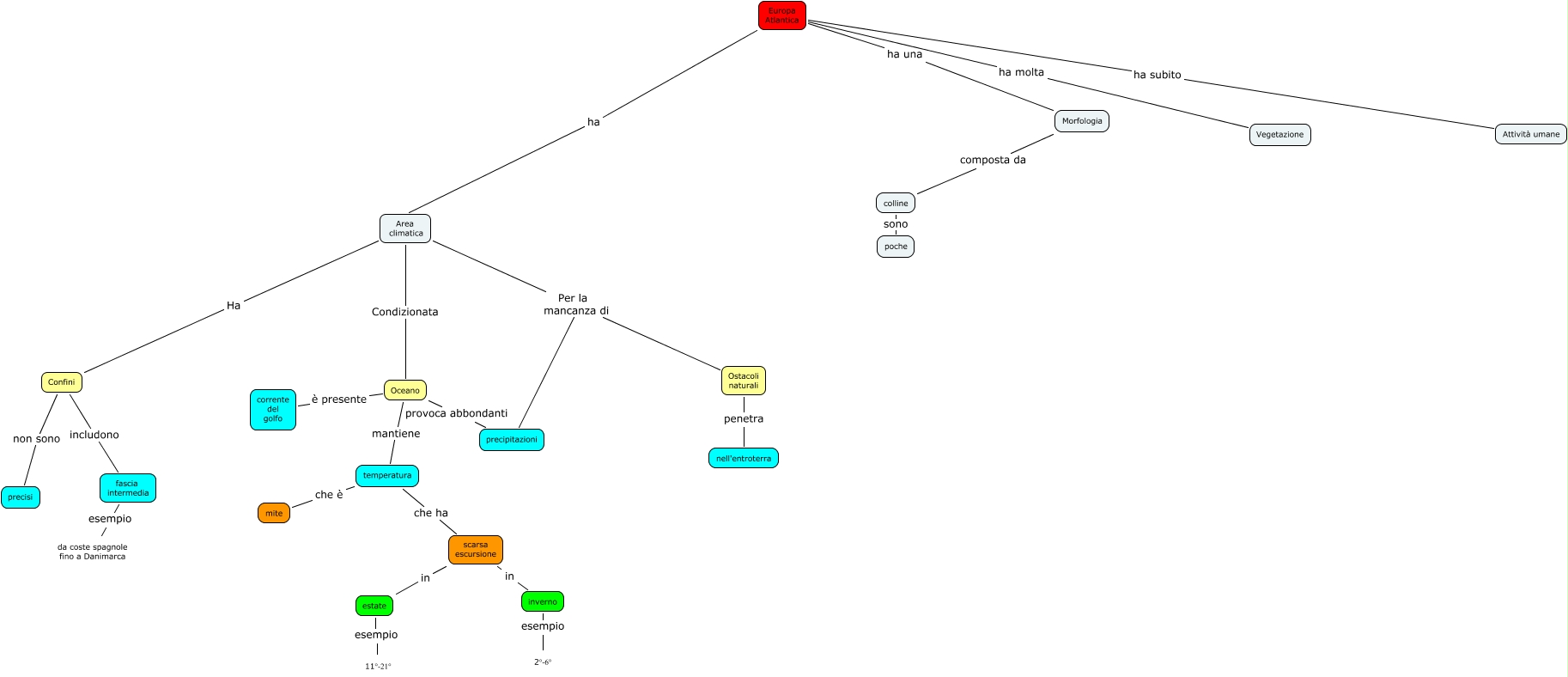 Questa Cmap, creata con IHMC CmapTools, contiene informazioni relative a: europa atlantica-lab07, fascia intermedia esempio da coste spagnole fino a Danimarca, Oceano mantiene temperatura, Morfologia composta da colline, precipitazioni Per la mancanza di Ostacoli naturali, Europa Atlantica ha molta Vegetazione, Europa Atlantica ha subito Attività umane, Area climatica Condizionata Oceano, Confini non sono precisi, Area climatica Ha Confini, Europa Atlantica ha Area climatica, scarsa escursione in estate, scarsa escursione in inverno, temperatura che è mite, inverno esempio 2°-6°, Europa Atlantica ha una Morfologia, Oceano provoca abbondanti precipitazioni, colline sono poche, temperatura che ha scarsa escursione, Oceano è presente corrente del golfo, Ostacoli naturali penetra nell'entroterra