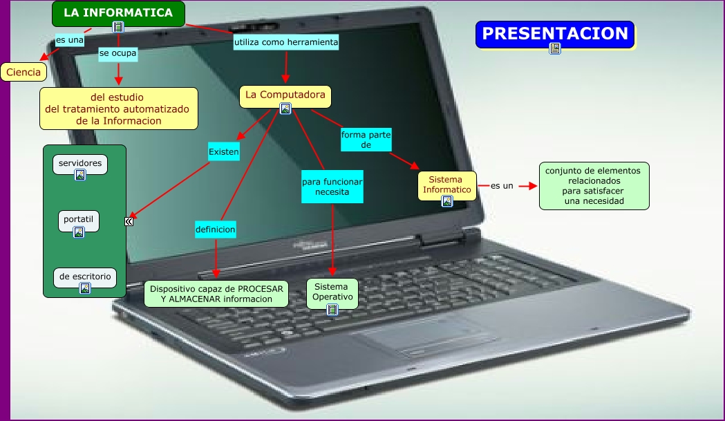 Clase de Informatica, La Computadora para funcionar necesita Sistema Operativo, LA INFORMATICA se ocupa del estudio del tratamiento automatizado de la Informacion, La Computadora Existen Diversos Tipos, LA INFORMATICA es una Ciencia, Sistema Informatico es un conjunto de elementos relacionados para satisfacer una necesidad, La Computadora forma parte de Sistema Informatico, LA INFORMATICA utiliza como herramienta La Computadora, La Computadora definicion Dispositivo capaz de PROCESAR Y ALMACENAR informacion