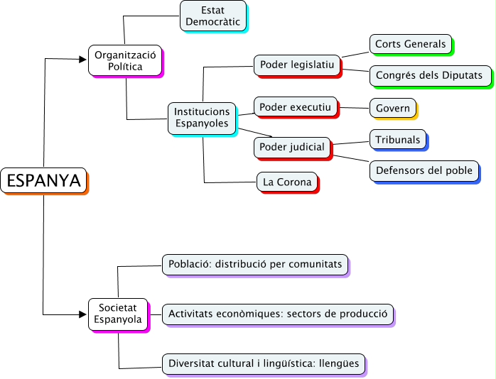 Aquest mapa conceptual conté informació relacionada amb: c6CarmenCm7, Societat Espanyola Diversitat cultural i lingüística: llengües, Poder legislatiu Congrés dels Diputats, Poder judicial Tribunals, Institucions Espanyoles La Corona, Institucions Espanyoles Poder executiu, Institucions Espanyoles Poder judicial, Societat Espanyola Població: distribució per comunitats, ESPANYA Organització Política, Institucions Espanyoles Poder legislatiu, Poder legislatiu Corts Generals, Poder judicial Defensors del poble, Organització Política Institucions Espanyoles, Organització Política Estat Democràtic, Societat Espanyola Activitats econòmiques: sectors de producció, Poder executiu Govern, ESPANYA Societat Espanyola
