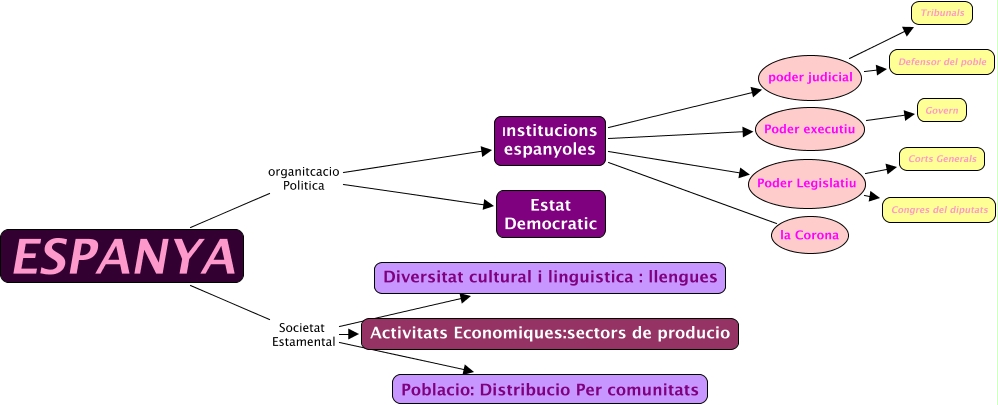 Aquest mapa conceptual conté informació relacionada amb: C6 Ines7, poder judicial Defensor del poble, Poder executiu Govern, ESPANYA organitcacio Politica Estat Democratic, Poder Legislatiu Corts Generals, ESPANYA Societat Estamental Activitats Economiques:sectors de producio, Institucions espanyoles la Corona, Institucions espanyoles poder judicial, ESPANYA organitcacio Politica Institucions espanyoles, Poder Legislatiu Congres del diputats, ESPANYA Societat Estamental Poblacio: Distribucio Per comunitats, ESPANYA Societat Estamental Diversitat cultural i linguistica : llengues, poder judicial Tribunals, Institucions espanyoles Poder Legislatiu, Institucions espanyoles Poder executiu