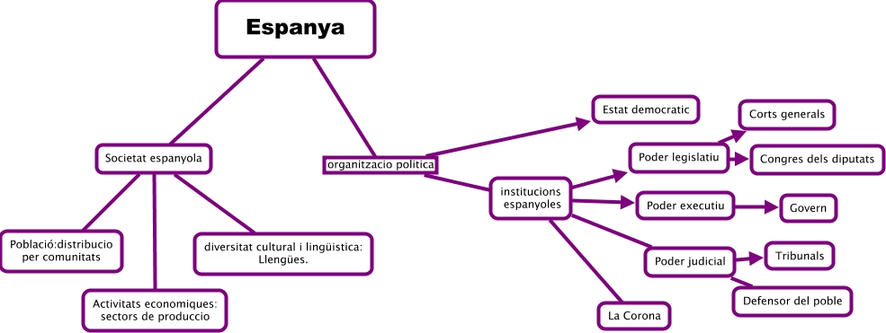 Aquest mapa conceptual conté informació relacionada amb: c6anna7, Poder executiu Govern, Societat espanyola Activitats economiques: sectors de produccio, Poder legislatiu Corts generals, institucions espanyoles La Corona, institucions espanyoles Poder legislatiu, institucions espanyoles Poder judicial, Poder judicial Defensor del poble, institucions espanyoles Poder executiu, Poder legislatiu Congres dels diputats, Poder judicial Tribunals, Espanya organitzacio politica Estat democratic, Societat espanyola Població:distribucio per comunitats, Societat espanyola diversitat cultural i lingüistica: Llengües., Espanya organitzacio politica institucions espanyoles, Espanya Societat espanyola