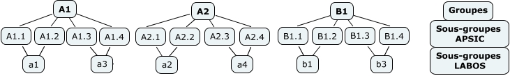 This Concept Map has information related to: Groupe APSIC, A1 ???? A1.2, a3 ???? A1.4, A2 ???? A2.1, b1 ???? B1.2, A1 ???? A1.4, A2 ???? A2.2, A1 ???? A1.3, B1 ???? B1.2, a4 ???? A2.3, a4 ???? A2.4