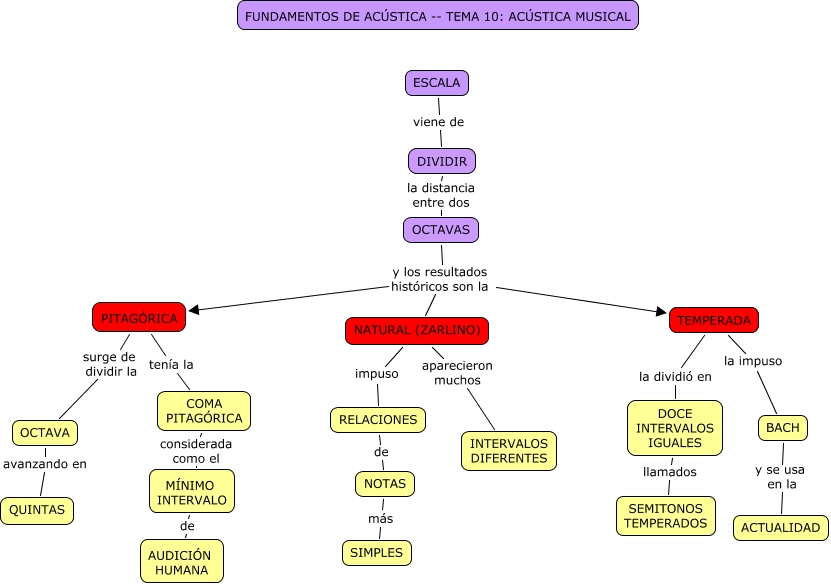 Este Cmap, tiene información relacionada con: Tema 10 Acústica musical, NOTAS más SIMPLES, OCTAVAS y los resultados históricos son la TEMPERADA, OCTAVAS y los resultados históricos son la NATURAL (ZARLINO), ESCALA viene de DIVIDIR, DIVIDIR la distancia entre dos OCTAVAS, MÍNIMO INTERVALO de AUDICIÓN HUMANA, DOCE INTERVALOS IGUALES llamados SEMITONOS TEMPERADOS, OCTAVA avanzando en QUINTAS, PITAGÓRICA tenía la COMA PITAGÓRICA, NATURAL (ZARLINO) impuso RELACIONES, COMA PITAGÓRICA considerada como el MÍNIMO INTERVALO, NATURAL (ZARLINO) aparecieron muchos INTERVALOS DIFERENTES, PITAGÓRICA surge de dividir la OCTAVA, TEMPERADA la dividió en DOCE INTERVALOS IGUALES, TEMPERADA la impuso BACH, OCTAVAS y los resultados históricos son la PITAGÓRICA, RELACIONES de NOTAS, BACH y se usa en la ACTUALIDAD