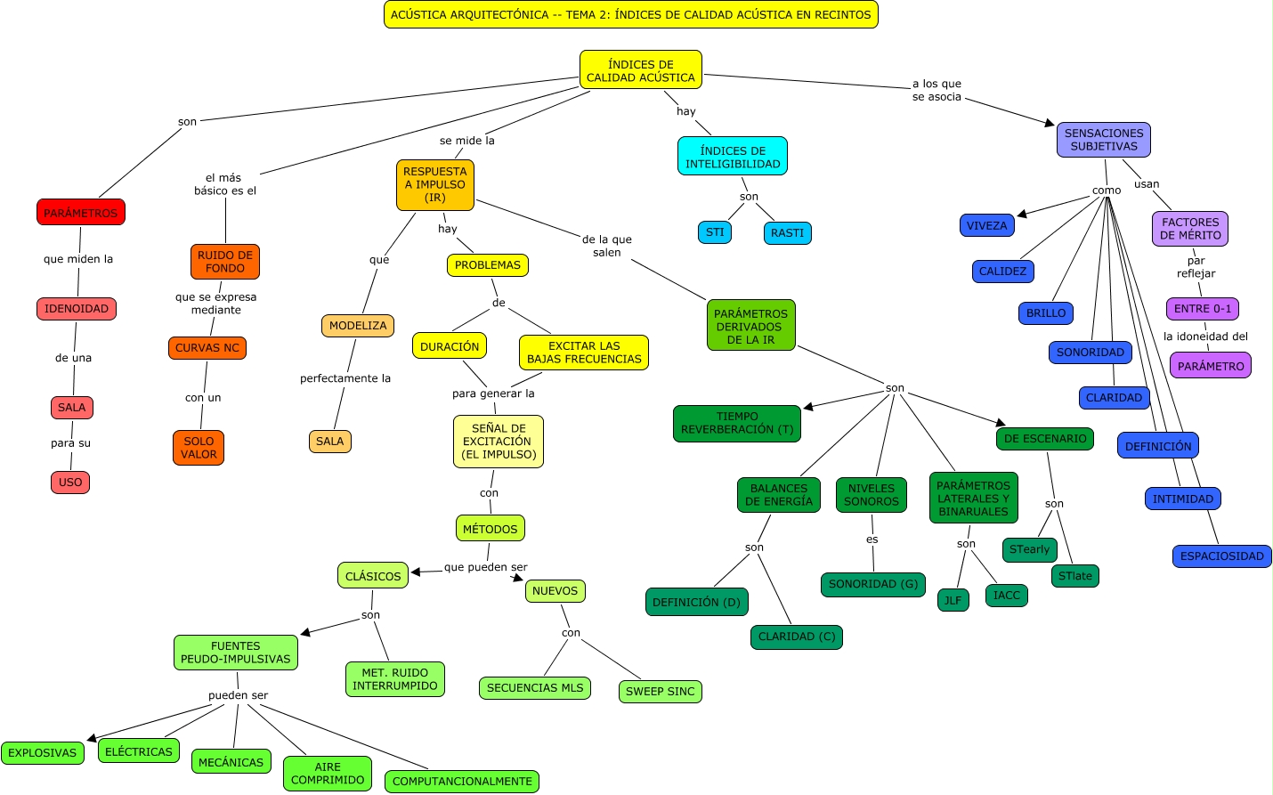 Este Cmap, tiene información relacionada con: Tema 2 Índices de calidad acústica en recintos, BALANCES DE ENERGÍA son CLARIDAD (C), DE ESCENARIO son STlate, FUENTES PEUDO-IMPULSIVAS pueden ser ELÉCTRICAS, PROBLEMAS de DURACIÓN, SALA para su USO, BALANCES DE ENERGÍA son DEFINICIÓN (D), SENSACIONES SUBJETIVAS como ESPACIOSIDAD, NUEVOS con SECUENCIAS MLS, SENSACIONES SUBJETIVAS como INTIMIDAD, CURVAS NC con un SOLO VALOR, FUENTES PEUDO-IMPULSIVAS pueden ser EXPLOSIVAS, ÍNDICES DE CALIDAD ACÚSTICA a los que se asocia SENSACIONES SUBJETIVAS, SENSACIONES SUBJETIVAS como DEFINICIÓN, PARÁMETROS DERIVADOS DE LA IR son TIEMPO REVERBERACIÓN (T), PARÁMETROS DERIVADOS DE LA IR son DE ESCENARIO, DE ESCENARIO son STearly, SENSACIONES SUBJETIVAS como VIVEZA, NUEVOS con SWEEP SINC, MODELIZA perfectamente la SALA, ÍNDICES DE INTELIGIBILIDAD son STI