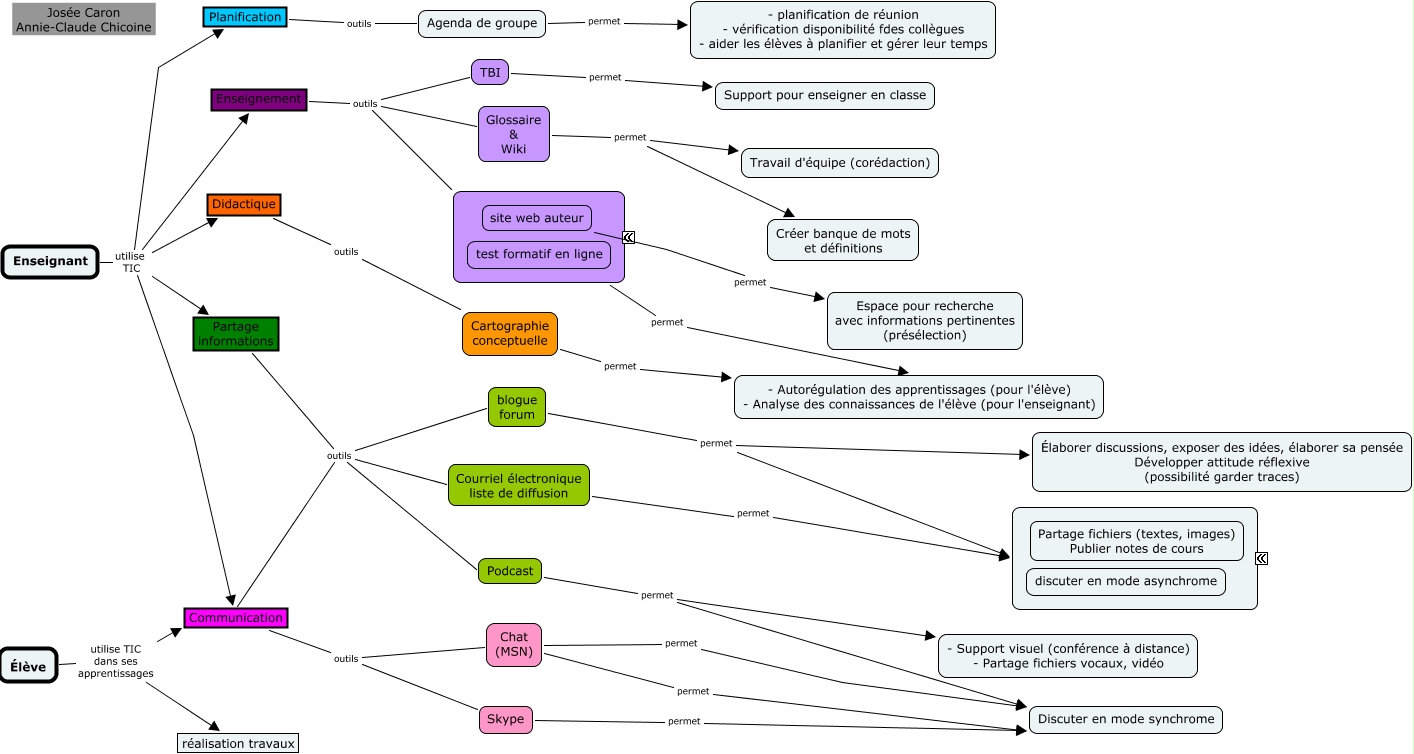 Cette carte conceptuelle, cree avec IHMC CmapTools, contient des informations liees a : PED879_Travail1, Didactique outils Cartographie conceptuelle, Podcast permet - Support visuel (conférence à distance) - Partage fichiers vocaux, vidéo, Planification outils Agenda de groupe, Partage informations outils blogue forum, blogue forum permet ????, Enseignant utilise TIC Planification, Enseignant utilise TIC Partage informations, Cartographie conceptuelle permet - Autorégulation des apprentissages (pour l'élève) - Analyse des connaissances de l'élève (pour l'enseignant), Enseignement outils Glossaire & Wiki, Enseignement outils TBI, site web auteur permet Espace pour recherche avec informations pertinentes (présélection), Podcast permet Discuter en mode synchrome, Enseignant utilise TIC Communication, Partage informations outils Podcast, Partage informations outils Courriel électronique liste de diffusion, Skype permet Discuter en mode synchrome, TBI permet Support pour enseigner en classe, Glossaire & Wiki permet Créer banque de mots et définitions, Enseignant utilise TIC Enseignement, Communication outils Chat (MSN)
