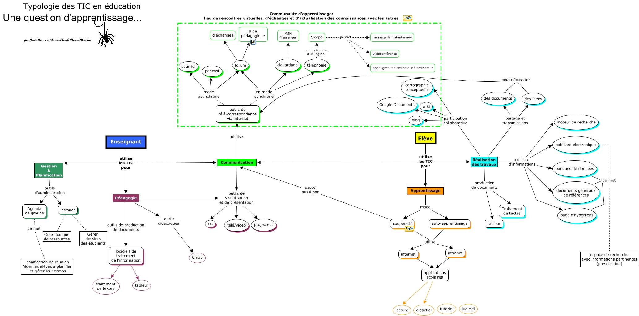 Cette carte conceptuelle, cree avec IHMC CmapTools, contient des informations liees a : modif_25_02_ACBC, coopératif utilise intranet, Réalisation des travaux partage et transmissions des documents, coopératif passe aussi par Communication, documents généraux de références permet espace de recherche avec informations pertinentes (présélection), internet applications scolaires, Réalisation des travaux collecte d'informations babillard électronique, Réalisation des travaux collecte d'informations page d'hyperliens, auto-apprentissage utilise intranet, Skype permet messagerie instantannée, outils de télé-correspondance via internet en mode synchrone clavardage, Pédagogie outils de visualisation et de présentation TBI, logiciels de traitement de l'information traitement de textes, Réalisation des travaux participation collaborative cartographie conceptuelle, logiciels de traitement de l'information tableur, Agenda de groupe permet Planification de réunion Aider les élèves à planifier et gérer leur temps, Réalisation des travaux collecte d'informations moteur de recherche, Réalisation des travaux collecte d'informations banques de données, Réalisation des travaux participation collaborative blog, intranet Gérer dossiers des étudiants, Pédagogie outils de visualisation et de présentation télé/video