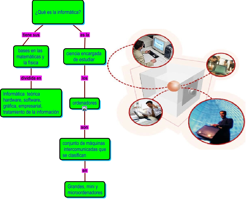 Este Cmap, tiene información relacionada con: Inform, ciencia encargada de estudiar los ordenadores, ¿Qué es la informática? tiene sus bases en las matemáticas y la física, ordenadores son conjunto de máquinas intercomunicadas que se clasifican, ¿Qué es la informática? es la ciencia encargada de estudiar, conjunto de máquinas intercomunicadas que se clasifican en Grandes, mini y microordenadores, bases en las matemáticas y la física dividida en Informática teórica hardware, software, gráfica, empresarial, tratamiento de la información