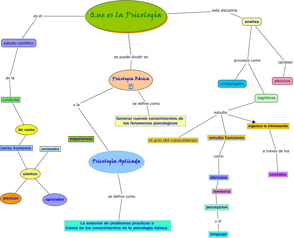 Este Cmap, tiene información relacionada con: Orientaciòn, Que es la Psicologìa se puede dividir en Psicologia Bàsica, sienten ???? piensan, conducta ???? seres humanos, estudio cientìfico de la conducta, cognitivos estudia estudia funciones, atencion ???? percepcion, analiza tambien afectivos, Psicologia Bàsica se define como Generar nuevos conocimientos de los fenomenos psicologicos, estudia funciones como atencion, analiza procesos como cognitivos, cognitivos estudia organiza la informaciòn, Que es la Psicologìa es el estudio cientìfico, Que es la Psicologìa esta disciplina analiza, atencion ???? memoria, organiza la informaciòn a traves de los sentidos, seres humanos ???? sienten, percepcion y el lenguaje, cognitivos estudia el acto del conocimiento, Psicologìa Aplicada se define como La solucion de problemas practicos a traves de los conocimientos de la psicologia bàsica., Psicologia Bàsica y la Psicologìa Aplicada