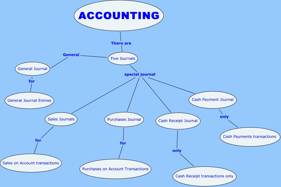 Este Cmap, tiene información relacionada con: maria, Five Journals special journal Sales Journals, Five Journals special journal Cash Payment Journal, Cash Receipt Journal only Cash Receipt transactions only, ACCOUNTING There are Five Journals, Five Journals General General Journal, Five Journals special journal Purchases Journal, Five Journals special journal Cash Receipt Journal, Cash Payment Journal only Cash Payments transactions, Sales Journals for Sales on Account transactions, General Journal for General Journal Entries, Purchases Journal for Purchases on Account Transactions