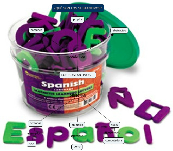 Este Cmap, tiene información relacionada con: el sustantivo, LOS SUSTANTIVOS pueden ser comunes, LOS SUSTANTIVOS DESIGNAN personas, LOS SUSTANTIVOS pueden ser propios, animales ejemplo perro, cosas ejemplo computadora, LOS SUSTANTIVOS pueden ser comunes, personas ejemplo ANA, LOS SUSTANTIVOS pueden ser abstractos, LOS SUSTANTIVOS DESIGNAN cosas, LOS SUSTANTIVOS DESIGNAN animales, LOS SUSTANTIVOS pueden ser propios, LOS SUSTANTIVOS pueden ser abstractos