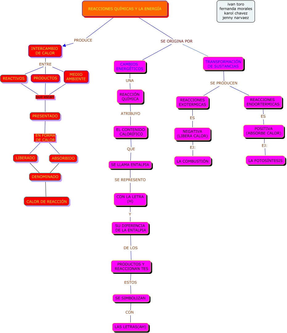 Este Cmap, tiene información relacionada con: REACCIONES QUMICAS Y LA ENERGIA, PRESENTADO EN FORMA DE CALOR ABSORBIDO, INTERCAMBIO DE CALOR ENTRE REACTIVOS, INTERCAMBIO DE CALOR ENTRE PRODUCTOS, DENOMINADO CALOR DE REACCIÓN, SU DIFERENCIA DE LA ENTALPIA DE LOS PRODUCTOS Y REACCIONAN TES, REACCIONES ENDORTERMICAS ES POSITIVA (ABSORBE CALOR), POSITIVA (ABSORBE CALOR) EJ: LA FOTOSÍNTESIS, TRANSFORMACIÓN DE SUSTANCIAS SE PRODUCEN REACCIONES ENDORTERMICAS, REACTIVOS que estan PRESENTADO, REACCIÓN QUÍMICA ATRIBUYO EL CONTENIDO CALORÍFICO, PRODUCTOS que estan PRESENTADO, CAMBIOS ENERGÉTICOS UNA REACCIÓN QUÍMICA, CON LA LETRA (H) Y SU DIFERENCIA DE LA ENTALPIA, REACCIONES QUÍMICAS Y LA ENERGÍA SE ORIGINA POR TRANSFORMACIÓN DE SUSTANCIAS, ABSORBIDO ???? DENOMINADO, PRODUCTOS Y REACCIONAN TES ESTOS SE SIMBOLIZAN, NEGATIVA (LIBERA CALOR) EJ: LA COMBUSTIÓN, SE LLAMA ENTALPIA SE REPRESENTO CON LA LETRA (H), REACCIONES QUÍMICAS Y LA ENERGÍA SE ORIGINA POR CAMBIOS ENERGÉTICOS, PRESENTADO EN FORMA DE CALOR LIBERADO