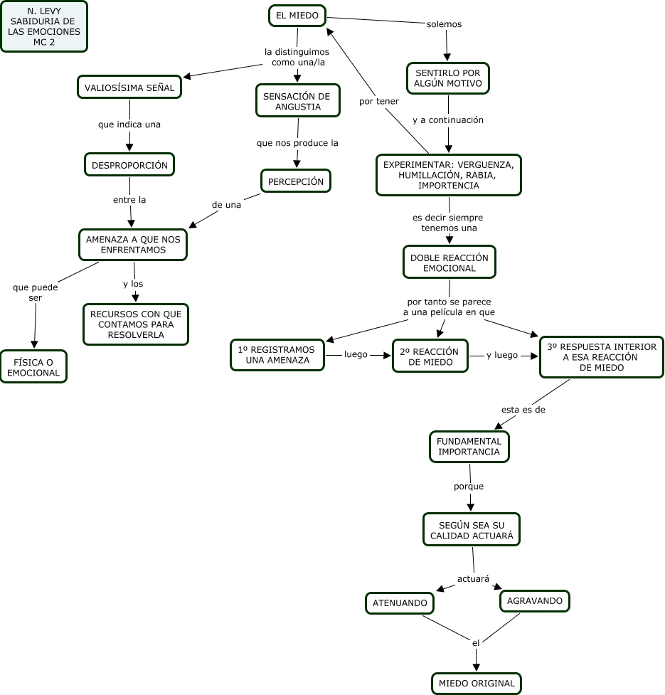 Este Cmap, tiene información relacionada con: El Miedo 2, DESPROPORCIÓN entre la AMENAZA A QUE NOS ENFRENTAMOS, AMENAZA A QUE NOS ENFRENTAMOS y los RECURSOS CON QUE CONTAMOS PARA RESOLVERLA, EL MIEDO la distinguimos como una/la VALIOSÍSIMA SEÑAL, DOBLE REACCIÓN EMOCIONAL por tanto se parece a una película en que 3º RESPUESTA INTERIOR A ESA REACCIÓN DE MIEDO, ATENUANDO el MIEDO ORIGINAL, 3º RESPUESTA INTERIOR A ESA REACCIÓN DE MIEDO esta es de FUNDAMENTAL IMPORTANCIA, DOBLE REACCIÓN EMOCIONAL por tanto se parece a una película en que 2º REACCIÓN DE MIEDO, SEGÚN SEA SU CALIDAD ACTUARÁ actuará AGRAVANDO, DOBLE REACCIÓN EMOCIONAL por tanto se parece a una película en que 1º REGISTRAMOS UNA AMENAZA, EXPERIMENTAR: VERGUENZA, HUMILLACIÓN, RABIA, IMPORTENCIA por tener EL MIEDO, EL MIEDO la distinguimos como una/la SENSACIÓN DE ANGUSTIA, SENSACIÓN DE ANGUSTIA que nos produce la PERCEPCIÓN, AMENAZA A QUE NOS ENFRENTAMOS que puede ser FÍSICA O EMOCIONAL, FUNDAMENTAL IMPORTANCIA porque SEGÚN SEA SU CALIDAD ACTUARÁ, 1º REGISTRAMOS UNA AMENAZA luego 2º REACCIÓN DE MIEDO, PERCEPCIÓN de una AMENAZA A QUE NOS ENFRENTAMOS, EL MIEDO solemos SENTIRLO POR ALGÚN MOTIVO, EXPERIMENTAR: VERGUENZA, HUMILLACIÓN, RABIA, IMPORTENCIA es decir siempre tenemos una DOBLE REACCIÓN EMOCIONAL, SENTIRLO POR ALGÚN MOTIVO y a cont¡nuación EXPERIMENTAR: VERGUENZA, HUMILLACIÓN, RABIA, IMPORTENCIA, AGRAVANDO el MIEDO ORIGINAL