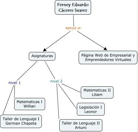 Este Cmap, tiene información relacionada con: Ferney apoya a, Asignaturas nivel 2 Legislación I Leonor, Asignaturas nivel 1 Matematicas I Willian, Ferney Eduardo Cáceres Suarez apoyo a: Asignaturas, Ferney Eduardo Cáceres Suarez apoyo a: Página Web de Empresarial y Emprendedores Virtuales, Asignaturas nivel 2 Matematicas II Liliam, Asignaturas nivel 1 Taller de Lenguaje I German Chapeta, Asignaturas nivel 2 Taller de Lenguaje II Arturo