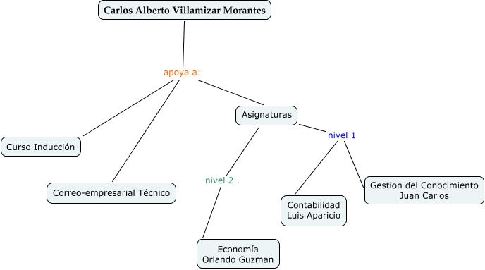 Este Cmap, tiene información relacionada con: Carlos apoya a, Asignaturas nivel 2.. Economía Orlando Guzman, Carlos Alberto Villamizar Morantes apoya a: Correo-empresarial Técnico, Carlos Alberto Villamizar Morantes apoya a: Curso Inducción, Carlos Alberto Villamizar Morantes apoya a: Asignaturas, Asignaturas nivel 1 Contabilidad Luis Aparicio, Asignaturas nivel 1 Gestion del Conocimiento Juan Carlos