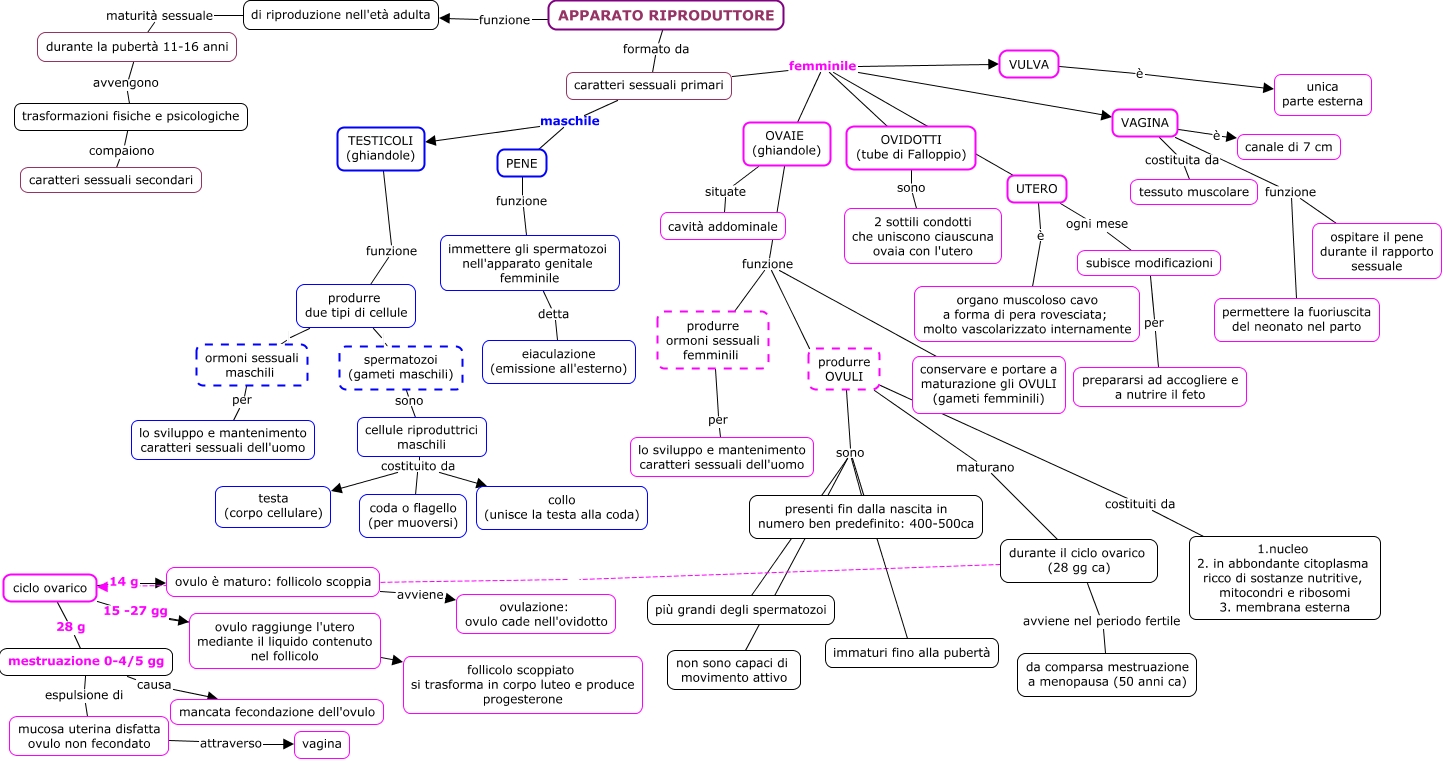 Questa Cmap, creata con IHMC CmapTools, contiene informazioni relative a: apparato_riproduttore, spermatozoi (gameti maschili) sono cellule riproduttrici maschili, durante il ciclo ovarico (28 gg ca) ciclo ovarico, OVIDOTTI (tube di Falloppio) sono 2 sottili condotti che uniscono ciauscuna ovaia con l'utero, OVAIE (ghiandole) funzione conservare e portare a maturazione gli OVULI (gameti femminili), TESTICOLI (ghiandole) funzione produrre due tipi di cellule, produrre OVULI sono più grandi degli spermatozoi, ciclo ovarico 28 g mestruazione 0-4/5 gg, mestruazione 0-4/5 gg espulsione di mucosa uterina disfatta ovulo non fecondato, mucosa uterina disfatta ovulo non fecondato attraverso vagina, produrre due tipi di cellule ormoni sessuali maschili, caratteri sessuali primari femminile VAGINA, caratteri sessuali primari maschile PENE, trasformazioni fisiche e psicologiche compaiono caratteri sessuali secondari, ciclo ovarico 14 g ovulo è maturo: follicolo scoppia, caratteri sessuali primari femminile VULVA, caratteri sessuali primari maschile TESTICOLI (ghiandole), caratteri sessuali primari femminile OVAIE (ghiandole), durante il ciclo ovarico (28 gg ca) avviene nel periodo fertile da comparsa mestruazione a menopausa (50 anni ca), APPARATO RIPRODUTTORE funzione di riproduzione nell'età adulta, VAGINA è canale di 7 cm
