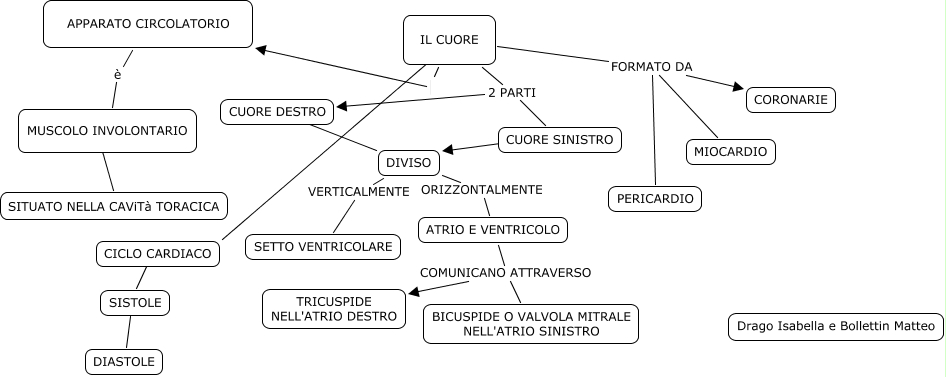 Questa Cmap, creata con IHMC CmapTools, contiene informazioni relative a: il cuore bollettin _ drago, DIVISO ORIZZONTALMENTE ATRIO E VENTRICOLO, CUORE SINISTRO ???? DIVISO, IL CUORE ???? CICLO CARDIACO, MUSCOLO INVOLONTARIO ???? SITUATO NELLA CAViTà TORACICA, IL CUORE FORMATO DA MIOCARDIO, CUORE DESTRO ???? DIVISO, SISTOLE ???? DIASTOLE, IL CUORE 2 PARTI CUORE SINISTRO, APPARATO CIRCOLATORIO è MUSCOLO INVOLONTARIO, CICLO CARDIACO ???? SISTOLE, IL CUORE FORMATO DA PERICARDIO, IL CUORE 2 PARTI CUORE DESTRO, IL CUORE FORMATO DA CORONARIE, ATRIO E VENTRICOLO COMUNICANO ATTRAVERSO TRICUSPIDE NELL'ATRIO DESTRO, DIVISO VERTICALMENTE SETTO VENTRICOLARE, IL CUORE APPARATO CIRCOLATORIO, ATRIO E VENTRICOLO COMUNICANO ATTRAVERSO BICUSPIDE O VALVOLA MITRALE NELL'ATRIO SINISTRO