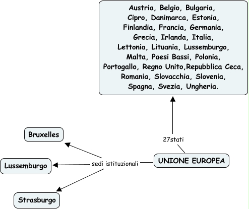 Questa Mappa Concettuale ha informazioni correlate a: UE Lucy, UNIONE EUROPEA sedi istituzionali Bruxelles, UNIONE EUROPEA sedi istituzionali Strasburgo, UNIONE EUROPEA sedi istituzionali Lussemburgo, UNIONE EUROPEA 27stati Austria, Belgio, Bulgaria, Cipro, Danimarca, Estonia, Finlandia, Francia, Germania, Grecia, Irlanda, Italia, Lettonia, Lituania, Lussemburgo, Malta, Paesi Bassi, Polonia, Portogallo, Regno Unito,Repubblica Ceca, Romania, Slovacchia, Slovenia, Spagna, Svezia, Ungheria.