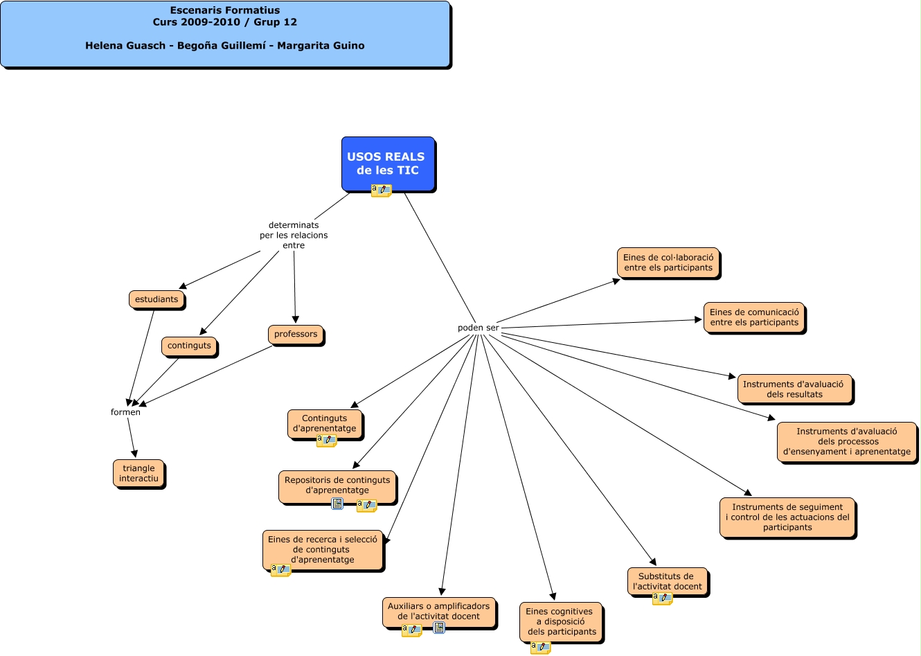 Este Cmap, tiene información relacionada con: Usos-reduit, USOS REALS de les TIC determinats per les relacions entre estudiants, USOS REALS de les TIC determinats per les relacions entre continguts, USOS REALS de les TIC poden ser Eines de comunicació entre els participants, estudiants formen triangle interactiu, professors formen triangle interactiu, USOS REALS de les TIC poden ser Auxiliars o amplificadors de l'activitat docent, USOS REALS de les TIC poden ser Instruments de seguiment i control de les actuacions del participants, USOS REALS de les TIC poden ser Substituts de l'activitat docent, continguts formen triangle interactiu, USOS REALS de les TIC poden ser Eines cognitives a disposició dels participants, USOS REALS de les TIC poden ser Eines de col·laboració entre els participants, USOS REALS de les TIC poden ser Eines de recerca i selecció de continguts d'aprenentatge, USOS REALS de les TIC poden ser Instruments d'avaluació dels resultats, USOS REALS de les TIC poden ser Continguts d'aprenentatge, USOS REALS de les TIC poden ser Repositoris de continguts d'aprenentatge, USOS REALS de les TIC poden ser Instruments d'avaluació dels processos d'ensenyament i aprenentatge, USOS REALS de les TIC determinats per les relacions entre professors