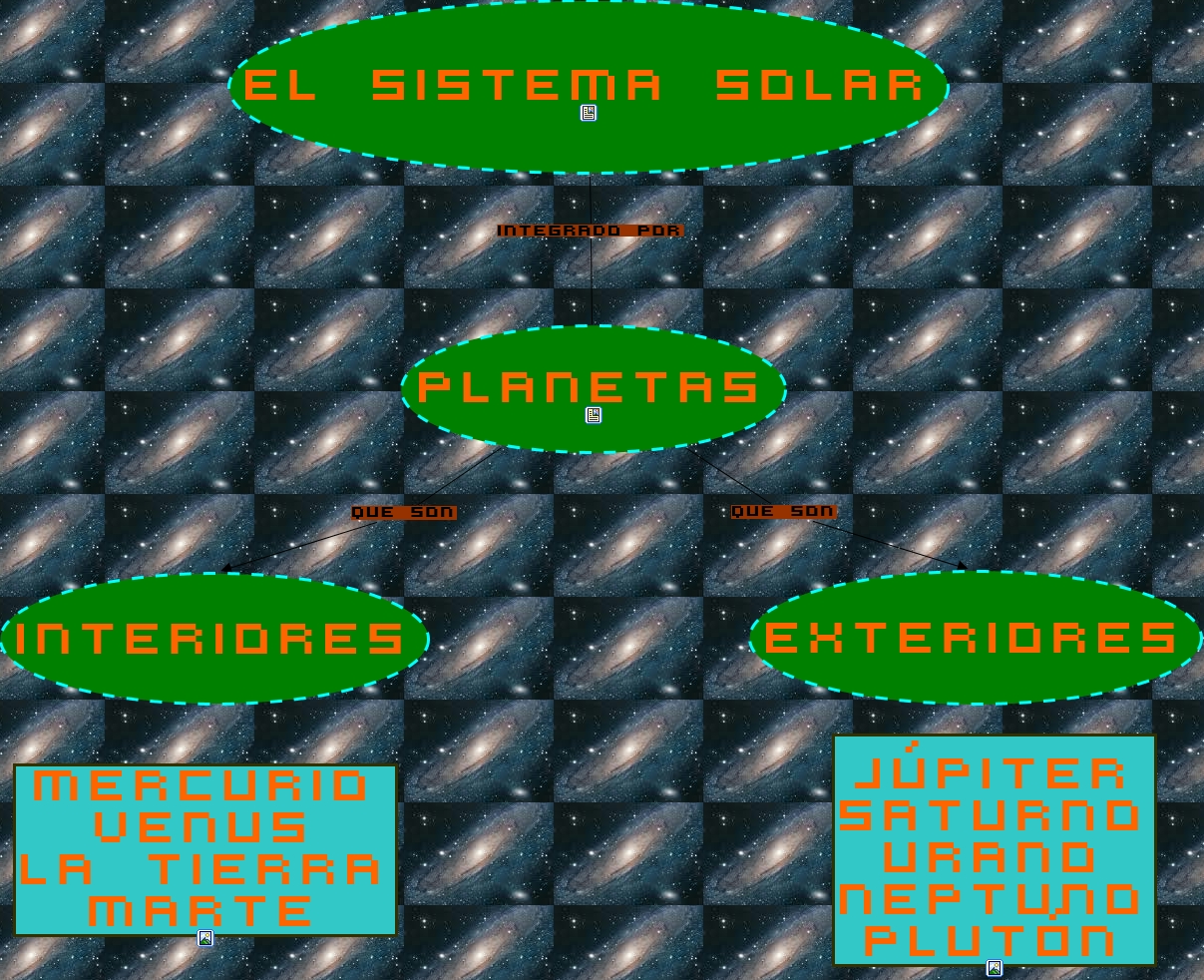 Aquest mapa conceptual conté informació relacionada amb: FrancescMoyano, EL SISTEMA SOLAR integrado por pLANETAS, pLANETAS que son INTERIORES, pLANETAS que son EXTERIORES