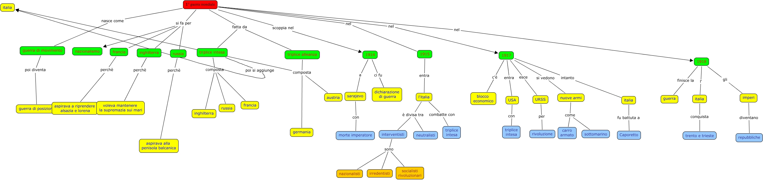 Questa Cmap, creata con IHMC CmapTools, contiene informazioni relative a: Copia di 1°guerra mondiale, 1917 c'è blocco economico, 1917 esce URSS, russia perchè aspirava alla penisola balcanica, sarajevo con morte imperatore, triplice alleanza composta germania, triplice alleanza composta austria, triplice intesa composta francia, triplice intesa composta inghilterra, francia perchè aspirava a riprendere alsazia e lorena, 1° guerra mondiale nel 1917, interventisti sono socialisti rivoluzionari, 1917 intanto italia, nuove armi come carro armato, triplice alleanza composta italia, 1° guerra mondiale scoppia nel 1914, 1° guerra mondiale si fa per nazionalismo, triplice intesa composta russia, interventisti sono nazionalisti, 1° guerra mondiale nasce come guerra di movimento, 1918 l' italia
