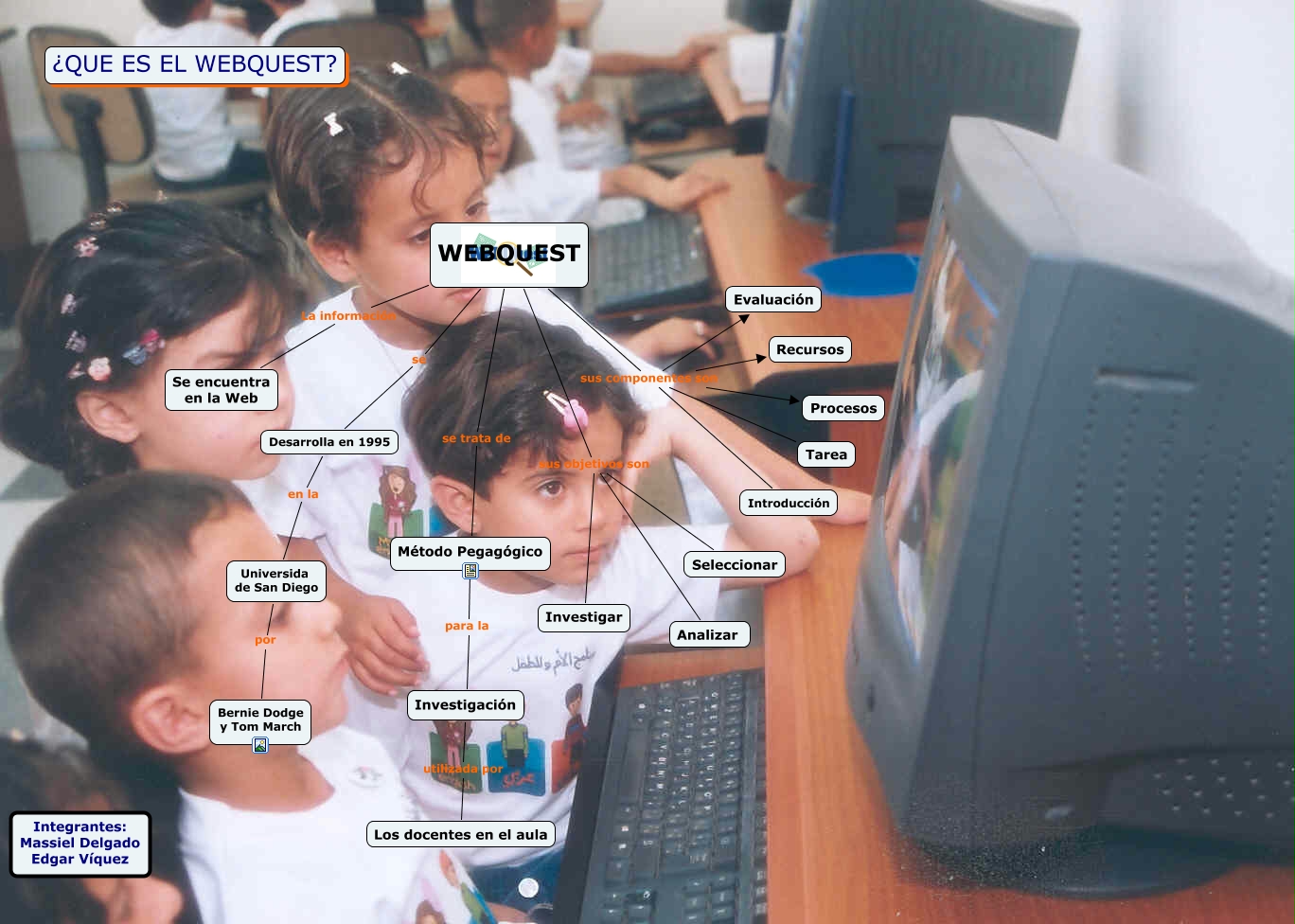 Este Cmap, tiene información relacionada con: El WebQuest_Massiel y Edgar, Universida de San Diego por Bernie Dodge y Tom March, WEBQUEST sus objetivos son Analizar, Desarrolla en 1995 en la Universida de San Diego, WEBQUEST sus componentes son Procesos, WEBQUEST sus componentes son Introducción, WEBQUEST La información Se encuentra en la Web, WEBQUEST sus componentes son Tarea, WEBQUEST sus objetivos son Investigar, Método Pegagógico para la Investigación, WEBQUEST sus componentes son Recursos, Investigación utilizada por Los docentes en el aula, WEBQUEST sus objetivos son Seleccionar, WEBQUEST se Desarrolla en 1995, WEBQUEST se trata de Método Pegagógico, WEBQUEST sus componentes son Evaluación