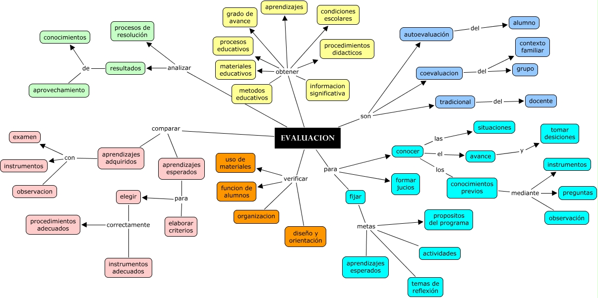 Este Cmap, tiene información relacionada con: evaluacion, EVALUACION verificar uso de materiales, EVALUACION verificar organizacion, EVALUACION para formar jucios, resultados de aprovechamiento, EVALUACION analizar procesos de resolución, aprendizajes adquiridos con observacion, EVALUACION analizar resultados, EVALUACION obtener aprendizajes, conocer el avance, conocer los conocimientos previos, EVALUACION obtener condiciones escolares, EVALUACION obtener metodos educativos, EVALUACION para fijar, fijar metas propositos del programa, EVALUACION son coevaluacion, coevaluacion del contexto familiar, elegir correctamente procedimientos adecuados, resultados de conocimientos, tradicional del docente, coevaluacion del grupo