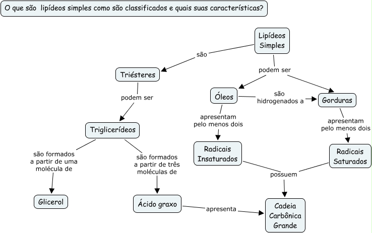 Esse mapa conceitual, produzido no IHMC CmapTools, tem a informação relacionada a: lipideos 3A, Triglicerídeos são formados a partir de uma molécula de Glicerol, Lipídeos Simples podem ser Óleos, Gorduras apresentam pelo menos dois Radicais Saturados, Óleos são hidrogenados a Gorduras, Radicais Saturados possuem Cadeia Carbônica Grande, Lipídeos Simples são Triésteres, Ácido graxo apresenta Cadeia Carbônica Grande, Triésteres podem ser Triglicerídeos, Lipídeos Simples podem ser Gorduras, Óleos apresentam pelo menos dois Radicais Insaturados, Radicais Insaturados possuem Cadeia Carbônica Grande, Triglicerídeos são formados a partir de três moléculas de Ácido graxo