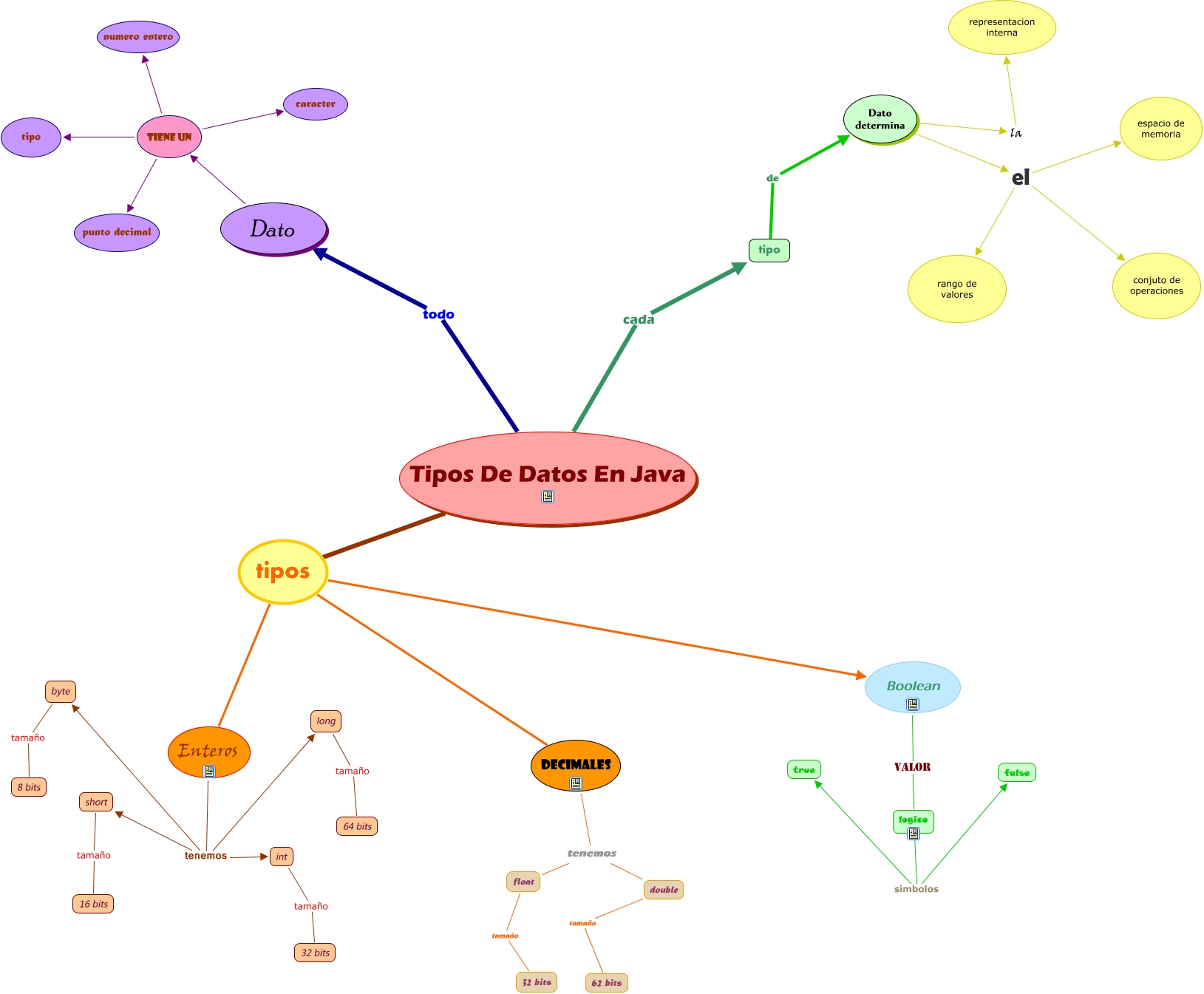 Este Cmap, tiene información relacionada con: tipos de archivos, Tipos De Datos En Java tipos Enteros, logico simbolos false, tipo de Dato determina, Tipos De Datos En Java tipos Boolean, Dato determina el rango de valores, Dato determina el espacio de memoria, Dato determina el conjuto de operaciones, Enteros tenemos int, Tipos De Datos En Java todo Dato, short tamaño 16 bits, Tipos De Datos En Java cada tipo, decimales tenemos float, decimales tenemos double, byte tamaño 8 bits, Enteros tenemos byte, Boolean valor logico, Dato tiene un numero entero, Dato tiene un punto decimal, Dato determina la representacion interna, float tamaño 32 bits