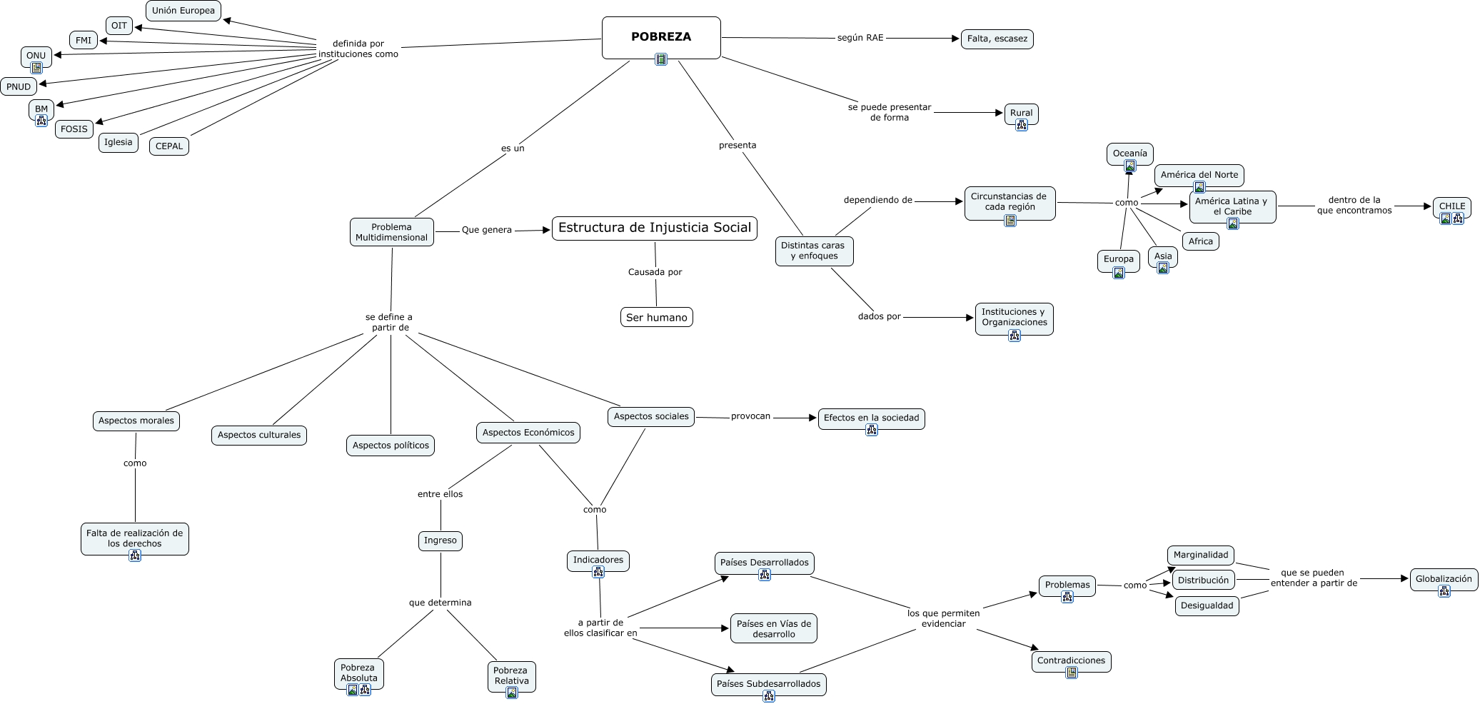 Este Cmap, tiene información relacionada con: Cmap colaborativo, POBREZA definida por instituciones como FOSIS, Distintas caras y enfoques dados por Instituciones y Organizaciones, América Latina y el Caribe dentro de la que encontramos CHILE, Aspectos Económicos como Indicadores, Circunstancias de cada región como Oceanía, Problema Multidimensional se define a partir de Aspectos culturales, POBREZA definida por instituciones como ONU, Problema Multidimensional se define a partir de Aspectos morales, POBREZA definida por instituciones como Unión Europea, Países Subdesarrollados los que permiten evidenciar Contradicciones, Problemas como Desigualdad, Indicadores a partir de ellos clasificar en Países en Vías de desarrollo, POBREZA según RAE Falta, escasez, Aspectos sociales provocan Efectos en la sociedad, Indicadores a partir de ellos clasificar en Países Subdesarrollados, Indicadores a partir de ellos clasificar en Países Desarrollados, POBREZA definida por instituciones como FMI, Países Subdesarrollados los que permiten evidenciar Problemas, Problemas como Marginalidad, Marginalidad que se pueden entender a partir de Globalización