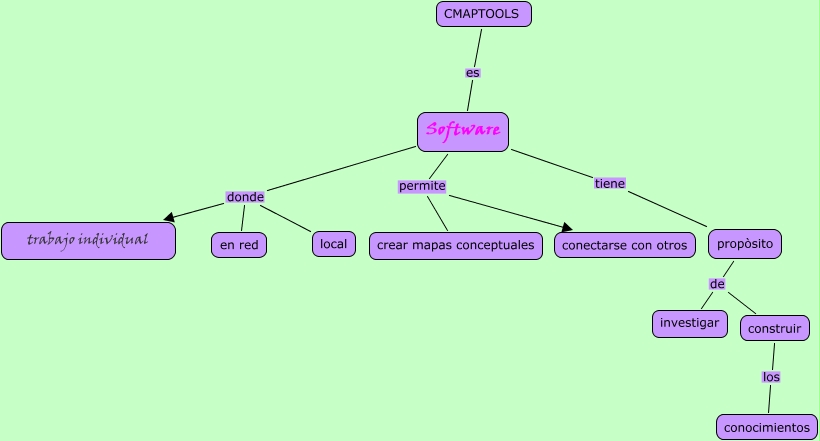 carmen, propòsito de investigar, Software donde en red, Software permite conectarse con otros, Software donde trabajo individual, Software tiene propòsito, Software donde local, construir los conocimientos, CMAPTOOLS es Software, Software permite crear mapas conceptuales, propòsito de construir
