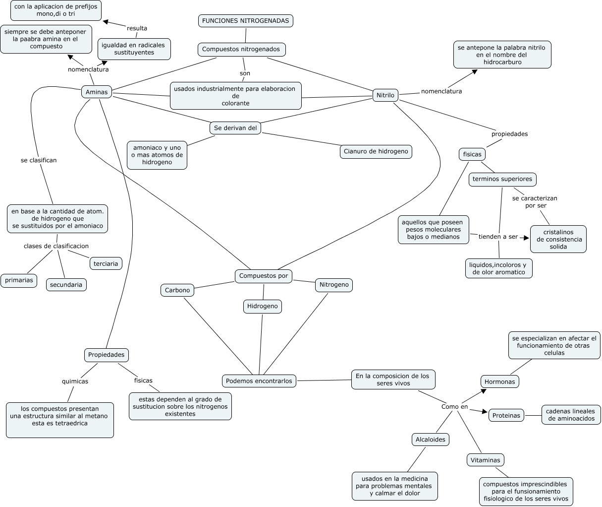 Este Cmap, tiene información relacionada con: F.nitrogenadas__L.Cardoso,C.Romo,J.Rosero,L.Torijano, Compuestos por ???? Nitrogeno, Aminas ???? Se derivan del, Nitrilo ???? Usados en la industria para elaboracion de colorantes, aquellos que poseen pesos moleculares bajos o medianos tienden a ser liquidos,incoloros y de olor aromatico, En la composicion de los seres vivos Como en Proteinas, Hidrogeno ???? Podemos encontrarlos, Propiedades fisicas estas dependen al grado de sustitucion sobre los nitrogenos existentes, Nitrilo nomenclatura se antepone la palabra nitrilo en el nombre del hidrocarburo, en base a la cantidad de atom. de hidrogeno que se sustituidos por el amoniaco clases de clasificacion terciaria, Compuestos por ???? Hidrogeno, Aminas se clasifican en base a la cantidad de atom. de hidrogeno que se sustituidos por el amoniaco, Compuestos por ???? Carbono, FUNCIONES NITROGENADAS ???? Compuestos nitrogenados, Aminas nomenclatura igualdad en radicales sustituyentes, Aminas nomenclatura siempre se debe anteponer la paabra amina en el compuesto, en base a la cantidad de atom. de hidrogeno que se sustituidos por el amoniaco clases de clasificacion secundaria, Nitrilo propiedades fisicas, terminos superiores tienden a ser cristalinos de consistencia solida, En la composicion de los seres vivos Como en Alcaloides, Vitaminas ???? compuestos imprescindibles para el funsionamiento fisiologico de los seres vivos