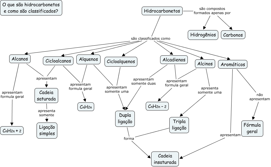 Esse mapa conceitual, produzido no IHMC CmapTools, tem a informação relacionada a: Hidrocarbonetos 2ºB, Cadeia saturada apresenta somente Ligação simples, Hidrocarbonetos são classificados como Cicloalquenos, Hidrocarbonetos são classificados como Alcanos, Dupla ligação forma Cadeia insaturada, Alcinos apresenta somente uma Tripla ligação, Hidrocarbonetos são classificados como Aromáticos, Alcanos apresentam formula geral CnH2n + 2, Alcadienos apresentam somente duas Dupla ligação, Alquenos apresentam somente uma Dupla ligação, Aromáticos apresentam Cadeia insaturada, Alcadienos apresentam formula geral CnH2n - 2, Alcanos apresentam Cadeia saturada, Aromáticos não apresentam Fórmula geral, Alcinos apresentam formula geral CnH2n - 2, Hidrocarbonetos são compostos formados apenas por Carbonos, Cicloalcanos apresentam Cadeia saturada, Cicloalquenos apresentam somente uma Dupla ligação, Hidrocarbonetos são classificados como Alquenos, Hidrocarbonetos são compostos formados apenas por Hidrogênios, Cicloalcanos apresentam formula geral CnH2n