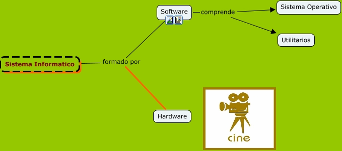 Este mapa conceptual tiene información relacionada a: Prueba, Software formado por Hardware, Sistema Informatico formado por Hardware, Software comprende Utilitarios, Software comprende Sistema Operativo