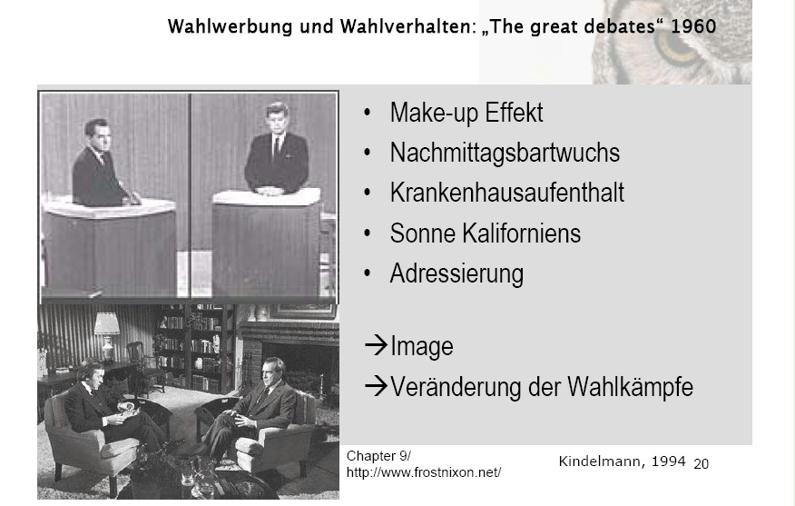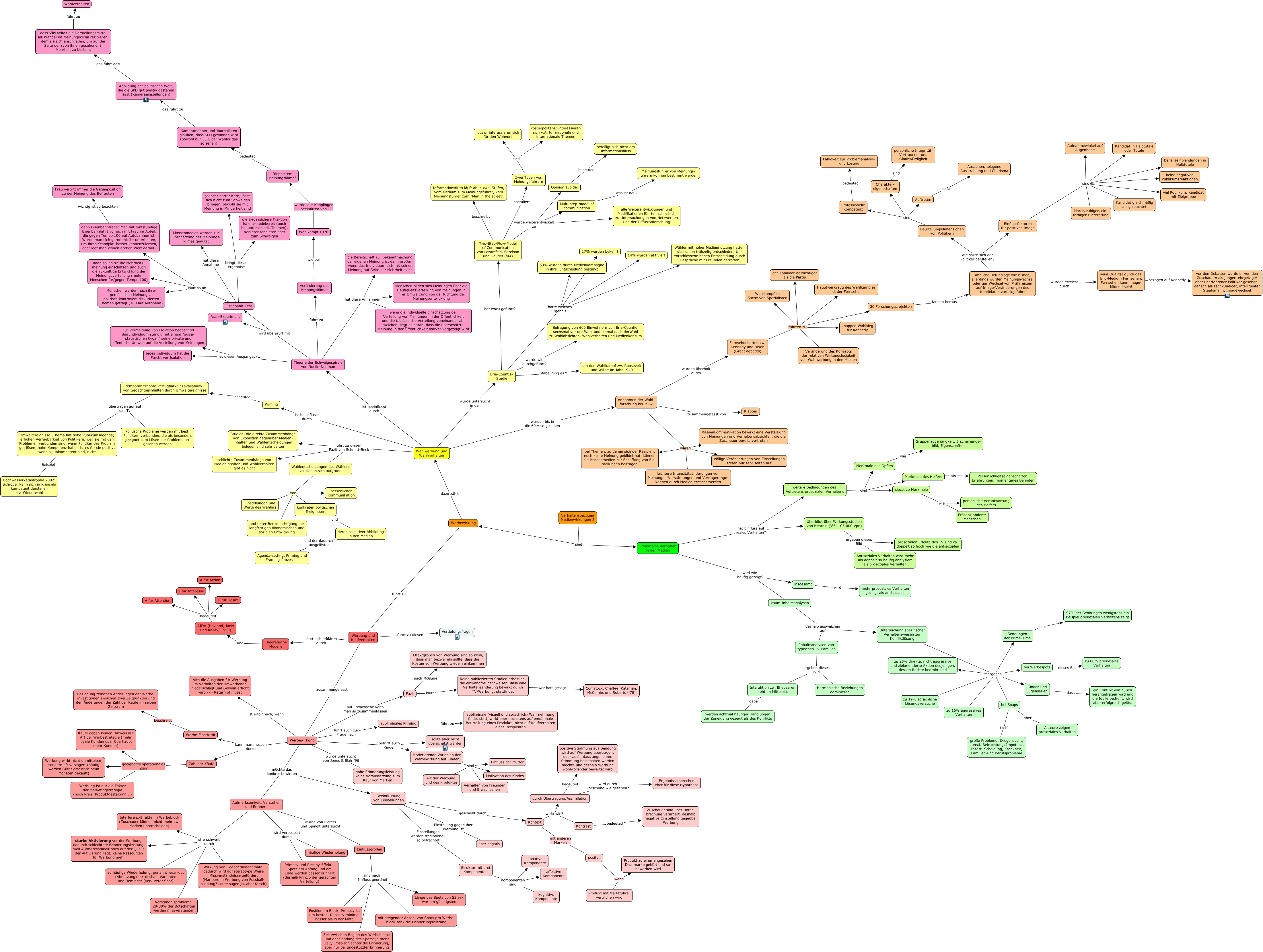 Dieses mit IHMC CmapTools erstellte CMap hat Informationen bezüglich: 15.Verhaltensbezogen Medienwirkungen 2 Prosoziales Verhalten und Werbung, ähnliche Befundlage wie bisher, allerdings wurden Meinungswechsel oder gar Wechsel von Präferenzen auf Image-Veränderungen des Kandidaten zurückgeführt wurden erreicht durch neue Qualität durch das Bild-Medium Fernsehen, Fernsehen kann image- bildend sein!, weitere Bedingungen des Auftretens prosozialen Verhaltens sind Merkmale des Helfers, Werbewirkung auf Erwachsene kann man so zusammenfassen Fazit, Struktur mit drei Komponenten Komponenten sind affektive Komponente, Aufmerksamkeit, Verstehen und Erinnern ist erschwert durch Interferenz-Effekte im Werbeblock (Zuschauer können nicht mehr zw. Marken unterscheiden), Aufmerksamkeit, Verstehen und Erinnern wird verbessert durch Primacy und Receny-Effekte, Spots am Anfang und am Ende werden besser erinnert (deshalb Prinzip der gerechten Verteilung), Aufmerksamkeit, Verstehen und Erinnern ist erschwert durch zu häufige Wiederholung, genannt wear-out (Abnutzung) --> deshalb Varianten und Reminder (verkürzter Spot), AIDA (Hovland, Janis und Kelley, 1953) bedeuted A für Attention, Einflussfaktoren für positives Image sind Aufnahmewinkel auf Augenhöhe, Multi-step-model of communication was ist neu? Meinungsführer von Meinungs- führern können bestimmt werden, Werbewirkung ist erfolgreich, wenn sich die Ausgaben für Werbung im Verhalten der Umworbenen niederschlägt und Gewinn erhöht wird --> Return of invest, Einflussfaktoren für positives Image sind keine negativen Publikumsreaktionen, Kontext mit anderen Marken positv,, Erie-Countie- Studie hatte welches Ergebnis? 53% wurden durch Medienkampagne in ihrer Entscheidung bestärkt, Prosoziales Verhalten in den Medien hat Einfluss auf reales Verhalten? Überblick über Wirkungsstudien von Hearold ('86, 105.000 Vpn), Untersuchung spezifischer Verhaltensweisen zur Konfliktlösung ergaben Sendungen der Prime-Time, dann Eisenbahnfrage: Man hat fünfstündige Eisenbahnfahrt vor sich mit Frau im Abteil, die gegen Tempo 100 auf Autobahnen ist. Würde man sich gerne mit ihr unterhalten, um ihren Standpkt. besser kennenzulernen, oder legt man keinen großen Wert darauf? wichtig ist zu beachten Frau vertritt immer die Gegenposition zu der Meinung des Befragten, Fazit lautet keine publiezierten Studien erhältlich, die einwandfrei nachweisen, dass eine Verhaltensänderung bewirkt durch TV-Werbung, stattfindet, Einflussfaktoren für positives Image sind klarer, ruhiger, ein- farbiger Hintergrund, Eisenbahn-Test hat diese Annahme Massenmedien werden zur Einschätzung des Meinungs- klimas genutzt