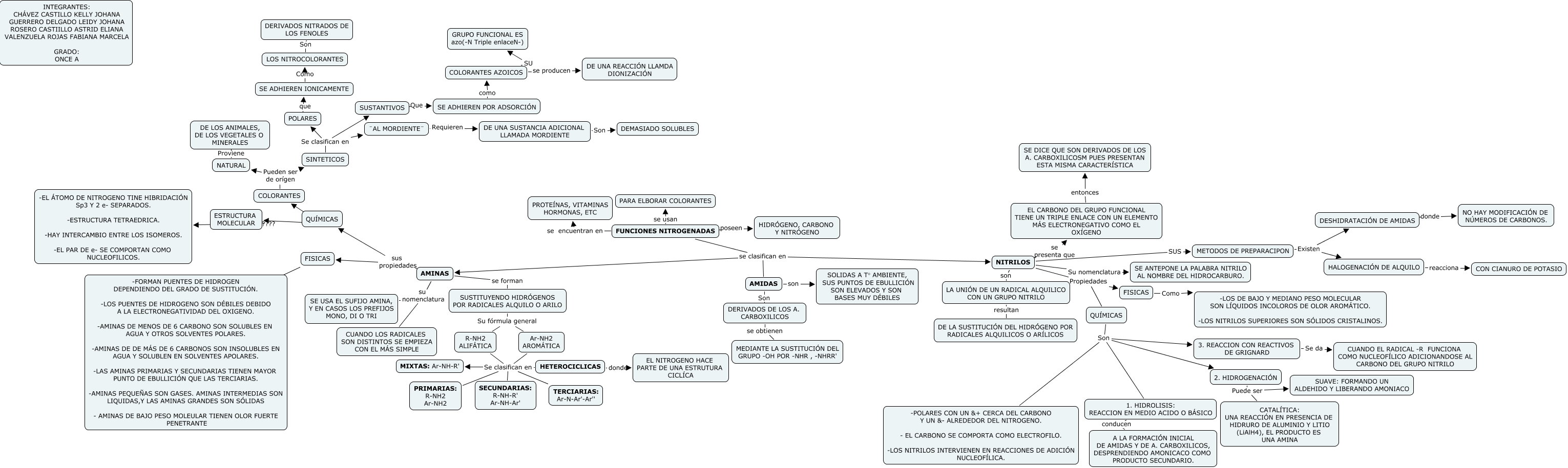 Este Cmap, tiene información relacionada con: FUNCIONES NITROGENADAS 4 periodo, FISICAS Como -LOS DE BAJO Y MEDIANO PESO MOLECULAR SON LÍQUIDOS INCOLOROS DE OLOR AROMÁTICO. -LOS NITRILOS SUPERIORES SON SÓLIDOS CRISTALINOS., SE ADHIEREN POR ADSORCIÓN como COLORANTES AZOICOS, R-NH2 ALIFÁTICA Se clasifican en MIXTAS: Ar-NH-R', HALOGENACIÓN DE ALQUILO reacciona CON CIANURO DE POTASIO, SINTETICOS Se clasifican en SUSTANTIVOS, Ar-NH2 AROMÁTICA Se clasifican en PRIMARIAS: R-NH2 Ar-NH2, Ar-NH2 AROMÁTICA Se clasifican en MIXTAS: Ar-NH-R', AMINAS su nomenclatura CUANDO LOS RADICALES SON DISTINTOS SE EMPIEZA CON EL MÁS SIMPLE, QUÍMICAS Como ESTRUCTURA MOLECULAR, R-NH2 ALIFÁTICA Se clasifican en SECUNDARIAS: R-NH-R' Ar-NH-Ar', Ar-NH2 AROMÁTICA Se clasifican en HETEROCICLICAS, 1. HIDROLISIS: REACCION EN MEDIO ACIDO O BÁSICO conducen A LA FORMACIÓN INICIAL DE AMIDAS Y DE A. CARBOXILICOS, DESPRENDIENDO AMONICACO COMO PRODUCTO SECUNDARIO., 2. HIDROGENACIÓN Puede ser CATALÍTICA: UNA REACCIÓN EN PRESENCIA DE HIDRURO DE ALUMINIO Y LITIO (LiAlH4), EL PRODUCTO ES UNA AMINA, SUSTITUYENDO HIDRÓGENOS POR RADICALES ALQUILO O ARILO Su fórmula general R-NH2 ALIFÁTICA, 2. HIDROGENACIÓN Puede ser SUAVE: FORMANDO UN ALDEHIDO Y LIBERANDO AMONIACO, AMINAS sus propiedades QUÍMICAS, QUÍMICAS Son 1. HIDROLISIS: REACCION EN MEDIO ACIDO O BÁSICO, AMINAS se forman SUSTITUYENDO HIDRÓGENOS POR RADICALES ALQUILO O ARILO, SINTETICOS Se clasifican en POLARES, ¨AL MORDIENTE¨ Requieren DE UNA SUSTANCIA ADICIONAL LLAMADA MORDIENTE
