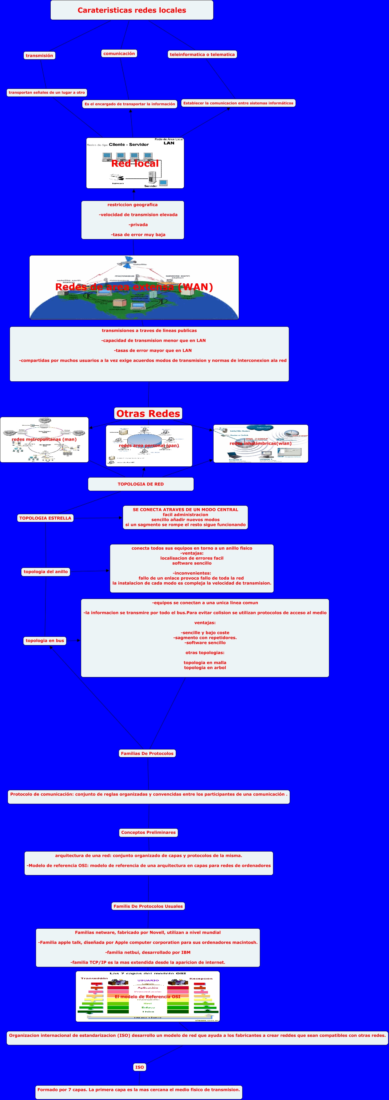 Este Cmap, tiene información relacionada con: resumennn, Familis De Protocolos Usuales Familias netware, fabricado por Novell, utilizan a nivel mundial -Familia apple talk, diseñada por Apple computer corporation para sus ordenadores macintosh. -familia netbui, desarrollado por IBM -familia TCP/IP es la mas extendida desde la aparicion de internet., comunicación Es el encargado de transportar la información, Red local Es el encargado de transportar la información, TOPOLOGIA ESTRELLA topologia del anillo, Protocolo de comunicación: conjunto de reglas organizadas y convencidas entre los participantes de una comunicación . Conceptos Preliminares, TOPOLOGIA DE RED redes inhalámbricas(wlan), topologia del anillo topologia en bus, TOPOLOGIA ESTRELLA SE CONECTA ATRAVES DE UN MODO CENTRAL facil administracion sencillo añadir nuevos modos si un sagmento se rompe el resto sigue funcionando, ISO Formado por 7 capas. La primera capa es la mas cercana el medio fisico de transmision., Familias De Protocolos Protocolo de comunicación: conjunto de reglas organizadas y convencidas entre los participantes de una comunicación ., Otras Redes redes area personal (pan), Otras Redes redes metropolitanas (man), transmisiones a traves de lineas publicas -capacidad de transmision menor que en LAN -tasas de error mayor que en LAN -compartidas por muchos usuarios a la vez exige acuerdos modos de transmision y normas de interconexion ala red ???? Otras Redes, -equipos se conectan a una unica linea comun -la informacion se transmire por todo el bus.Para evitar colision se utilizan protocolos de acceso al medio ventajas: -sencille y bajo coste -sagmento con repetidores. -software sencillo otras topologias: topologia en malla topologia en arbol Familias De Protocolos, Otras Redes redes inhalámbricas(wlan), restriccion geografica -velocidad de transmision elevada -privada -tasa de error muy baja Redes de area extensa (WAN), TOPOLOGIA DE RED redes area personal (pan), Familias netware, fabricado por Novell, utilizan a nivel mundial -Familia apple talk, diseñada por Apple computer corporation para sus ordenadores macintosh. -familia netbui, desarrollado por IBM -familia TCP/IP es la mas extendida desde la aparicion de internet. El modelo de Referencia OSI, Carateristicas redes locales teleinformatica o telematica, El modelo de Referencia OSI Organizacion internacional de estandarizacion (ISO) desarrollo un modelo de red que ayuda a los fabricantes a crear reddes que sean compatibles con otras redes.