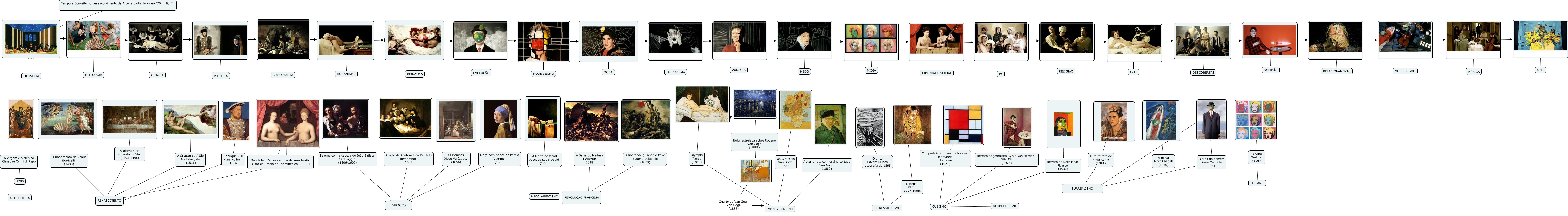 Esse mapa conceitual, produzido no IHMC CmapTools, tem a informação relacionada a: 70 MILLIONS, Autorretrato com orelha cortada Van Gogh (1889) ???? IMPRESSIONISMO, ???? MEDO, O Beijo Klimt (1907-1908) ???? EXPRESSIONISMO, ????, ???? O Nascimento de Vênus Botticelli (1483), A Criação de Adão Michelangelo (1511) ???? RENASCIMENTO, 1280 ???? ARTE GÓTICA, ???? EVOLUÇÃO, Retrato de Dora Maar Picasso (1937) ???? ????, A Virgem e o Menino Cimabue Cenni di Pepo ???? 1280, ???? Henrique VIII Hans Holbein 1536, ???? RELIGIÃO, A Balsa do Medusa Géricault (1818) ???? ????, Moça com brinco de Pérola Veermer (1665) ???? ????, O Nascimento de Vênus Botticelli (1483) ???? RENASCIMENTO, ???? Retrato de Dora Maar Picasso (1937), ????, A Morte de Marat Jacques-Louis David (1793) ???? NEOCLASSICISMO, Henrique VIII Hans Holbein 1536 ???? ????, ???? MODERNISMO