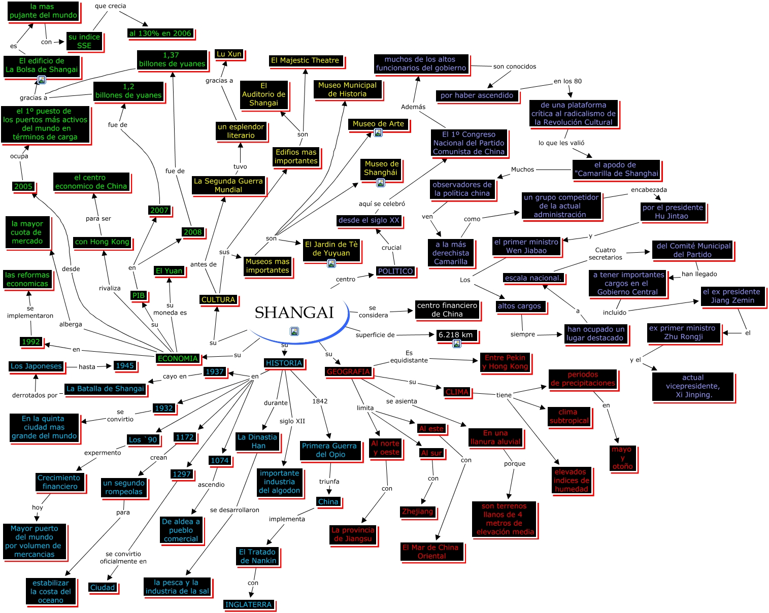 Este Cmap, tiene información relacionada con: Mapa Conceptual de Shanghai, ECONOMIA alberga la mayor cuota de mercado, CLIMA tiene elevados indices de humedad, HISTORIA en 1932, HISTORIA en Los `90, HISTORIA en 1074, 1172 crean un segundo rompeolas, un segundo rompeolas para estabilizar la costa del oceano, del Comité Municipal del Partido han llegado a tener importantes cargos en el Gobierno Central, GEOGRAFIA se asienta En una llanura aluvial, GEOGRAFIA limita Al sur, Crecimiento financiero hoy Mayor puerto del mundo por volumen de mercancias, ECONOMIA desde 2005, 2008 fue de 1,37 billones de yuanes, Edifios mas importantes son El Majestic Theatre, 1074 ascendio De aldea a pueblo comercial, ex primer ministro Zhu Rongji y el actual vicepresidente, Xi Jinping., HISTORIA en 1172, un esplendor literario gracias a Lu Xun, la mas pujante del mundo con su indice SSE, HISTORIA durante La Dinastia Han