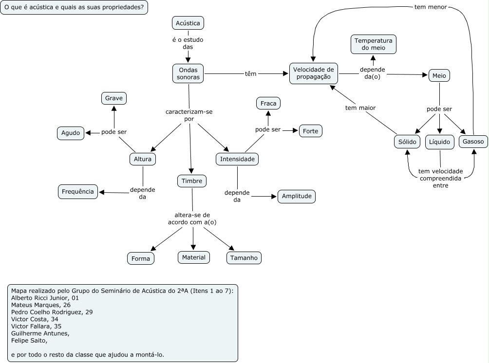 Esse mapa conceitual, produzido no IHMC CmapTools, tem a informação relacionada a: Acústica (Itens 1 ao 7)