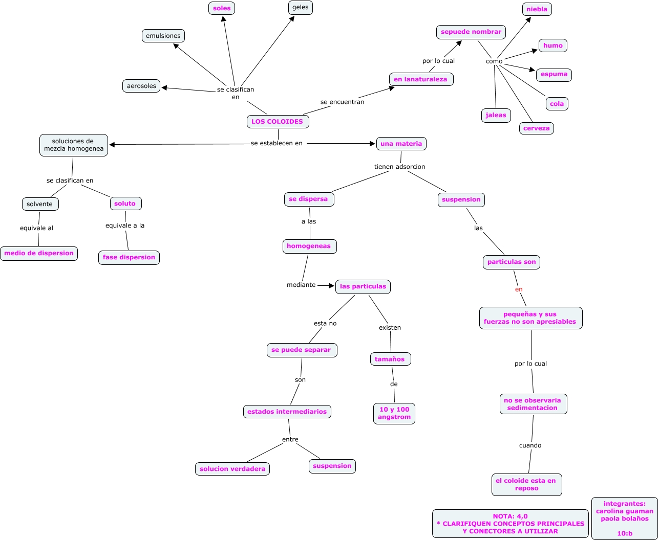 Este Cmap, tiene información relacionada con: coloides carolina guaman y paola bolaños, en lanaturaleza por lo cual sepuede nombrar, LOS COLOIDES se establecen en soluciones de mezcla homogenea, tamaños de 10 y 100 angstrom, LOS COLOIDES se clasifican en emulsiones, estados intermediarios entre suspension, sepuede nombrar como niebla, particulas son en pequeñas y sus fuerzas no son apresiables, pequeñas y sus fuerzas no son apresiables por lo cual no se observaria sedimentacion, suspension las particulas son, sepuede nombrar como cola, LOS COLOIDES se encuentran en lanaturaleza, soluto equivale a la fase dispersion, se puede separar son estados intermediarios, LOS COLOIDES se clasifican en soles, una materia tienen adsorcion se dispersa, sepuede nombrar como cerveza, una materia tienen adsorcion suspension, LOS COLOIDES se establecen en una materia, LOS COLOIDES se clasifican en geles, soluciones de mezcla homogenea se clasifican en solvente