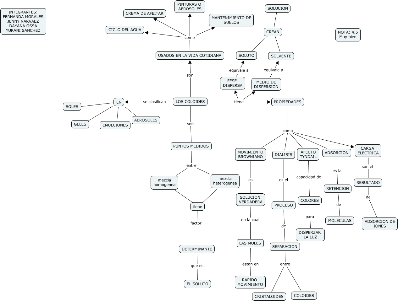 Este Cmap, tiene información relacionada con: COLOIDES fernanda, PROPIEDADES como AFECTO TYNDAIL, PROPIEDADES como DIALISIS, USADOS EN LA VIDA COTIDIANA como PINTURAS O AEROSOLES, EN ???? GELES, PUNTOS MEDIDOS entre mezcla homogenea, DETERMINANTE que es EL SOLUTO, CREAN ???? SOLUCION, COLORES para DISPERZAR LA LUZ, PROPIEDADES como MOVIMIENTO BROWNIANO, SOLUTO ???? CREAN, SOLVENTE ???? CREAN, MEDIO DE DISPERSION equivale a SOLVENTE, RETENCION de MOLECULAS, LOS COLOIDES tiene FESE DISPERSA, SEPARACION entre COLOIDES, mezcla heterogenea ???? tiene, CARGA ELECTRICA son el RESULTADO, LOS COLOIDES tiene MEDIO DE DISPERSION, RESULTADO de ADSORCION DE IONES, PROPIEDADES como CARGA ELECTRICA